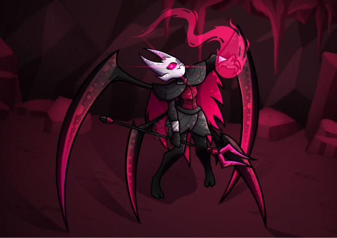 М.- Если прям вообще, то скорее всего это была бы моя ОСка Мегами. Тоже по вселенной Hollow Knight. Точнее, сначала она была как по вселенной, потом стала более независимой. Я бы хотела её сделать, потому что у неё прикольная броня, паукообразные клешни из спины, копьё, маска достаточно сложной формы. Ещё может какие-нибудь спецэффекты, типа огня, сделать. И на ноги сделать вот эти удлинения в виде... Ну, такие, как козлиные ноги с изгибом. Обычно это делают с помощью специальной конструкции, её достаточно сложно сделать.