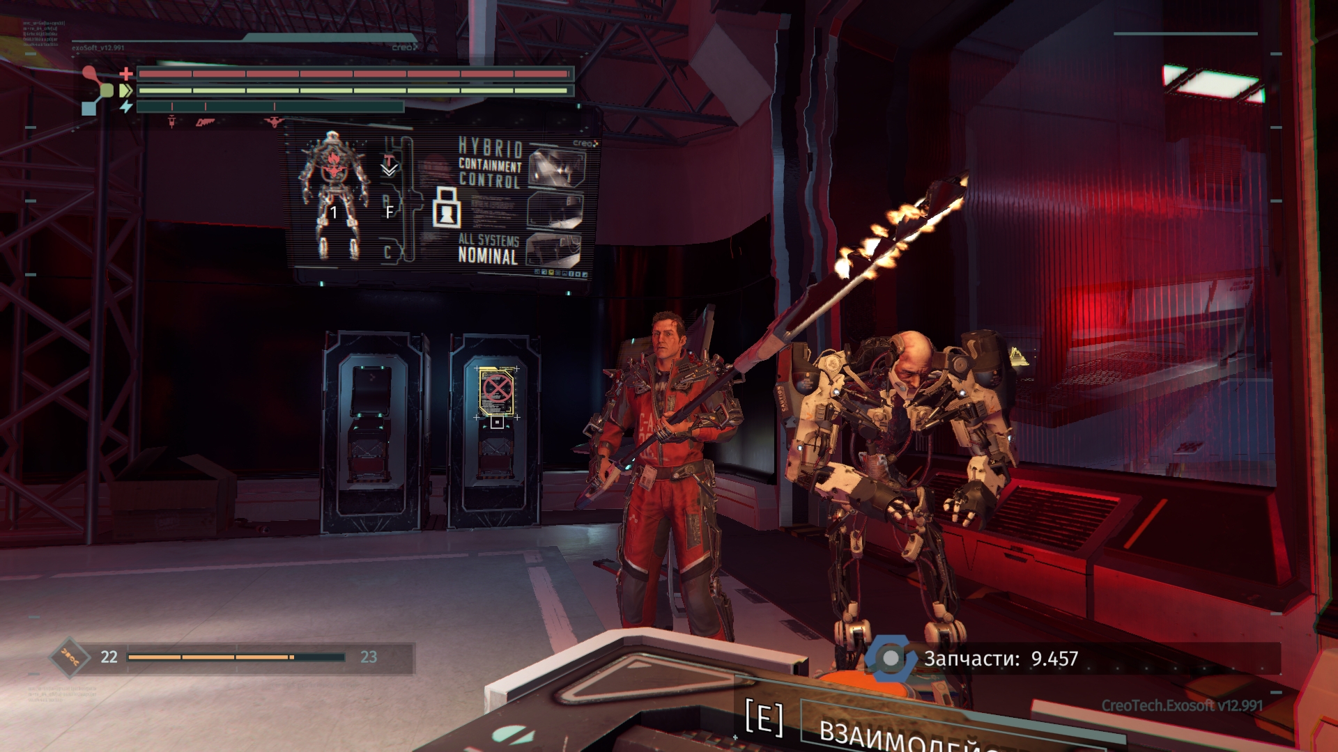 После процедуры по установке экзоскелета без обезболивающих, Уоррен приходит в себя на свалке в окружении мертвых коллег и агрессивных роботов. Позже выясняется, что в «CREO» произошел скачек энергии, из-за которого многие сотрудники погибли в следствии сгоревшего нейрочипа в голове, а остальные в основном сошли с сума. Салли будет направлять Уоррена, чтобы он снял блокировку с зала администрации. Место где разворачиваются события игры, это главная Штаб квартира «CREO» в США. Энергетический скачек был четыре дня назад. Примерно в это время Уоррен трудоустраивается в «CREO».
