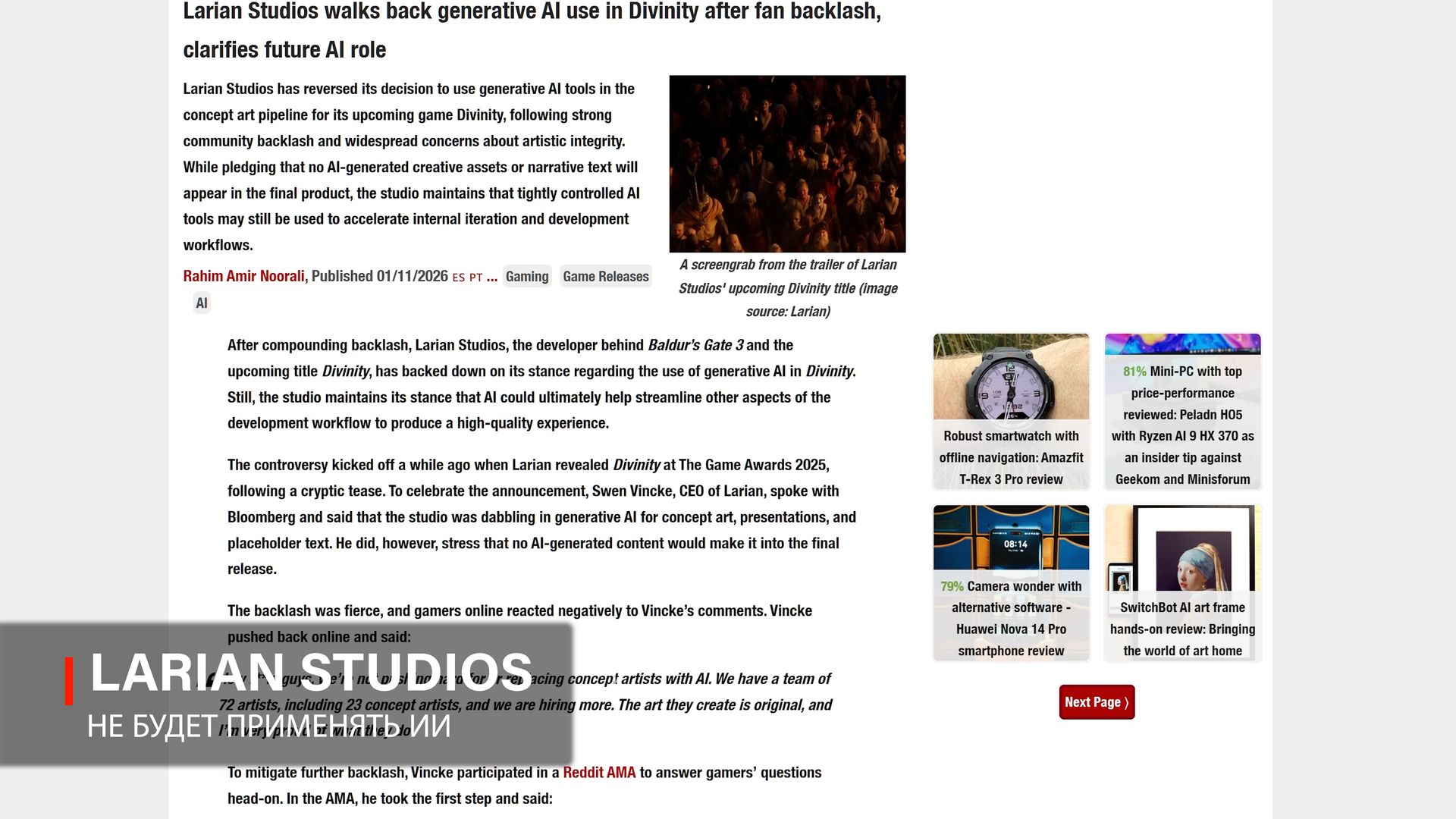Так, геймдизайнер Baldur’s Gate 3 и Divinity Свен Винке заявлял, что его студия принципиально отказывается от использования генеративного ИИ во всех аспектах разработки — не из-за технических ограничений, а потому, что сам спор вокруг ИИ стал слишком токсичным, начал вредить играм и подрывать доверие аудитории. [Источник]