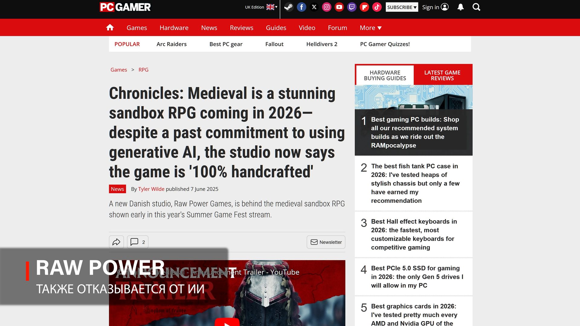 Схожую позицию заняли и авторы будущей RPG Chronicles: Medieval: они отдельно подчёркивали, что проект будет создан «на 100% вручную», хотя ранее допускали более активное использование генеративных инструментов. [Источник]