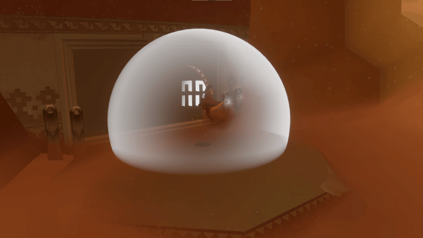 Прямо под холмом виднеются старые руины, через которые нам предстоит пройти. Потому что именно там мы находим наш первый сияющий символ. Подойдя к нему, мы получаем шарф, который нужен тут для того, чтобы летать.