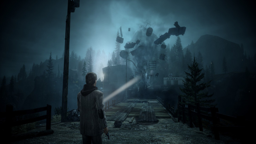 Дело в том, что, как мне кажется, Алан Уэйк – инвалид. Он бегает, как инвалид, задыхаясь спустя метров 20 после старта. Он прыгает, как инвалид, делая странные рывки и не всегда отзываясь на нажатия, отчего летит мимо нужной платформы и падает в пропасть. Он достаёт оружие, как инвалид, крайне нерасторопно и будто вовсе забыв, что конкретно он хотел достать. Я понимаю, это может быть сделано ради реалистичности. Всё-таки, главный герой у нас писатель, который вряд ли ведёт активный образ жизни. Но, имхо, с этим переборщили. И ладно бы ещё в большинстве случаев герой не способен пробежать нормальное расстояние. Однако случаются постановочные моменты, которые буквально предполагают собой, что протагонист в данный момент должен спасаться бегством. Но вместо этого Алан лёгкой пробежкой передвигается по мосту, пока ему на пятки наступает грёбаный смерч. Могли бы хоть в такие моменты отключать это ограничение в 20 метров, тем более, что в реализме бы оно не потеряло, ведь в критические моменты, по идее, врубается адреналин, который способен повысить выносливость.