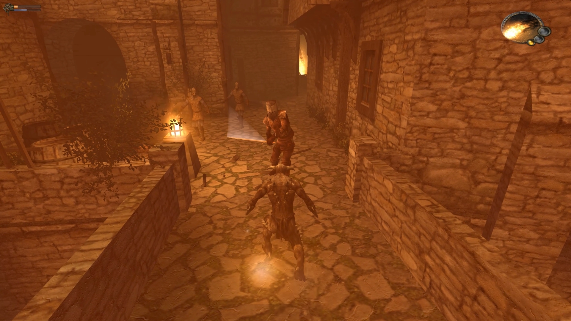 Сражаться в этой игре приходится очень много, и 80% столкновений происходят с применением оружия ближнего боя, поэтому от деревянных дуэлей никуда не денешься и, стиснув зубы, приходится терпеть, пользоваться багами и изобретать хитрые схемы, чтобы справиться с толпой монстров. И чем дальше заводят нас по сюжету, тем больше и больше мобов выпускают на арену. Практически каждое действие игрока сопровождается срабатыванием скрипта, который спавнит рядом недругов. Зашли в комнату - вот вам три мечника, подняли важный предмет - держите 2 мечника, 3 копейщика и пару лучников; нашли секрет с боеприпасами и ресурсами - получайте еще толпу разношерстных воинов. Забавно то, что в игре есть боссы, которые, по логике должны быть самыми опасными противниками, но на поверку оказывается, что они - полное дно, не представляющее из себя никакого челенджа. Пара-тройка рядовых врагов с мечами и стрелами оказывается гораздо опаснее, чем любой здоровенный скорпион.