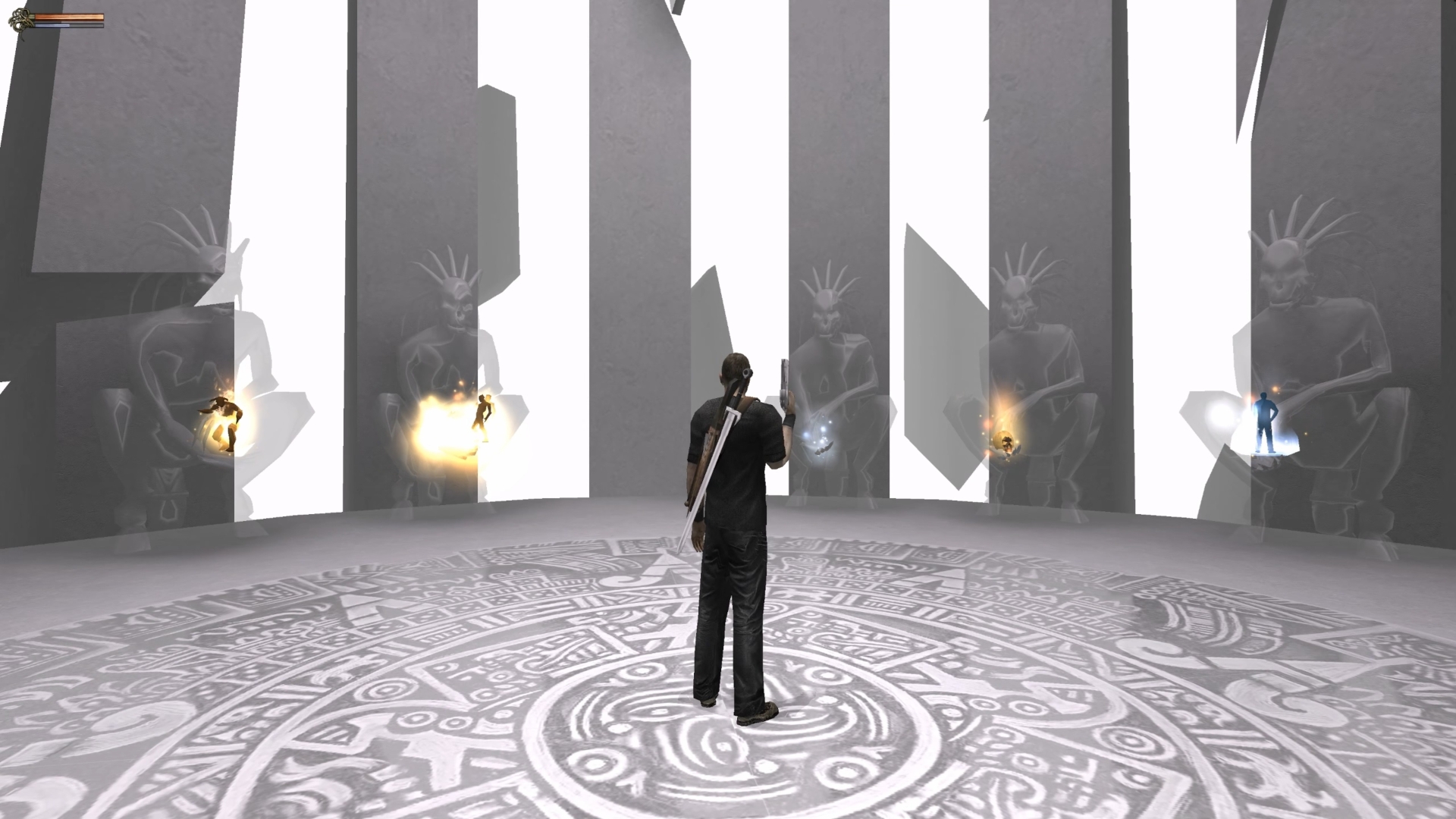 “Shade” при первом запуске вызывает лёгкий диссонанс и отчасти обманывает ожидания игрока (мне, как минимум, ей удалось пустить пыль в глаза). Во-первых, стартовый экран и играющая на фоне музыка вообще не сочетаются друг с другом. Если картинка демонстрирует мрачный дворик какого-то средневекового поселения, чьи жители как будто вымерли от чумы, то аккомпанирует этому очень бодрый саундтрек, призывающий отправиться в яркое приключение, полное опасностей и загадок; словно еще чуть-чуть и из за границы кадра выскочит Индиана Джонс. Во-вторых, стартовая локация действительно отдает вайбами "Resident Evil" или даже "Silent Hill": маленький уютный городок с мощеными брусчаткой улочками полнится зловещей тишиной и скрывающимся из поля зрения тенями. Когда мы находим пистолет и вступаем в схватку с первыми врагами-зомби, кажется, что впереди ожидает аляповатый, но атмосферный survival-хоррор. Однако данное впечатление длится недолго. Спустя минут 15 герою навешивают задач по поиску сердец падших ангелов, вручают световой меч и телепортируют в другой мир, в котором геймплей и общее настроение меняются с ног на голову, и вместо хоррора мы попадаем в приключенческий экшен на манер "Tomb Raider". Казалось бы, тоже неплохо, но в сравнении с похождениями Лары Крофт “Гнев Ангелов” смотрится хуже, и вот почему.