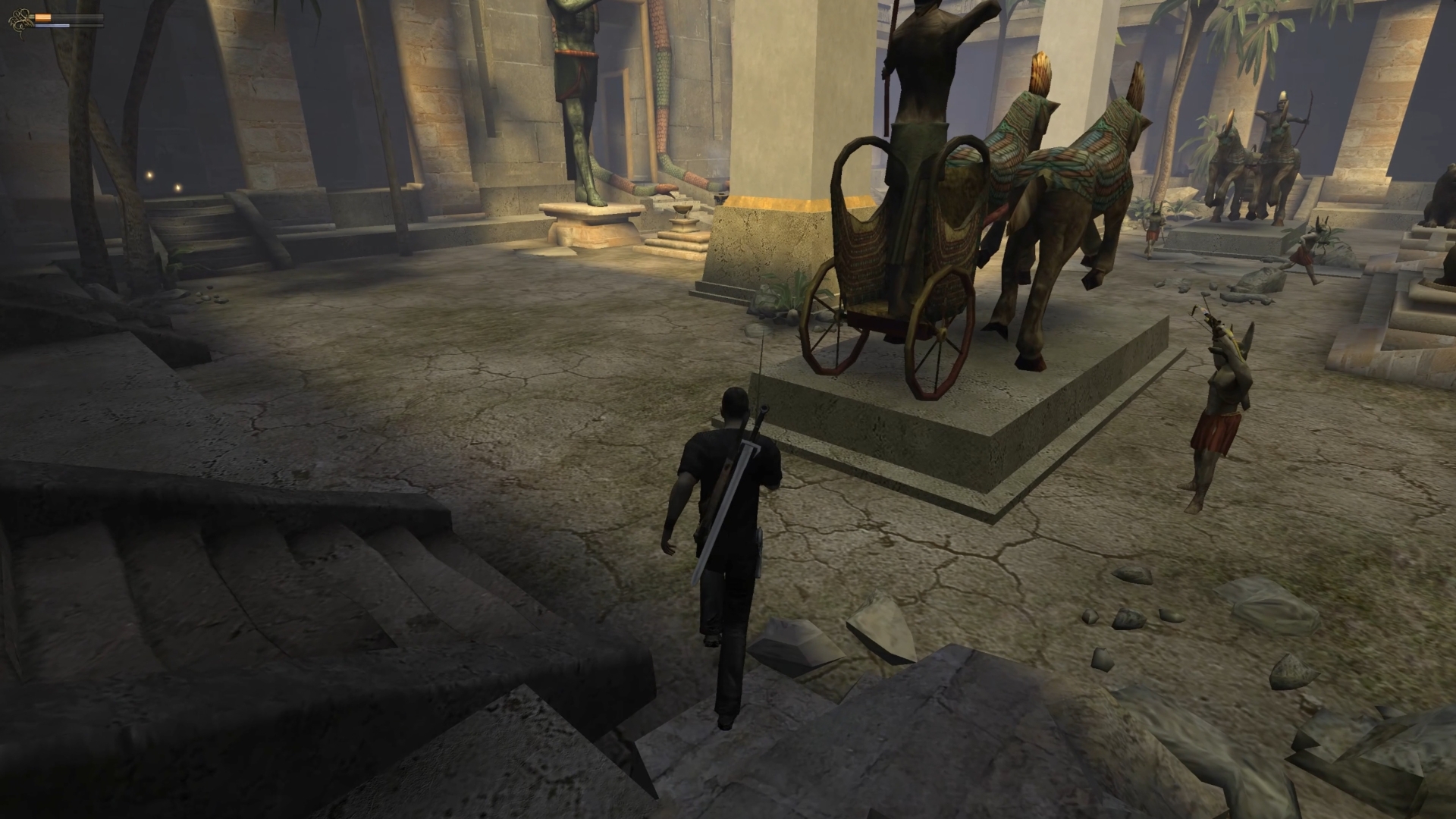 Не редкими бывают и случаи, когда ты оказываешься в тупике, не понимая чего от тебя хотят и куда двигаться дальше. Поскольку в игре есть платформинг и простенький паркур (герой может лазить по карнизам) в большинстве случаев выходом из ступора оказывается какой-нибудь неприметный выступ, который выглядит, как часть декорации и не сразу получается осознать, что за него надо ухватиться и проползти в не менее незаметную расщелину в стене. Если первый уровень подобными огрехами геометрии не страдает, то вот Египет, с его лабиринтами склепов и гробниц, довольно часто подкидывает такие ситуации. Иной раз, пробираясь по какому-нибудь узкому, кривому парапету над пропастью у края карты, невольно закрадывается мысль: а это так и задумано или я сейчас баг словил, и меня тут быть не должно?