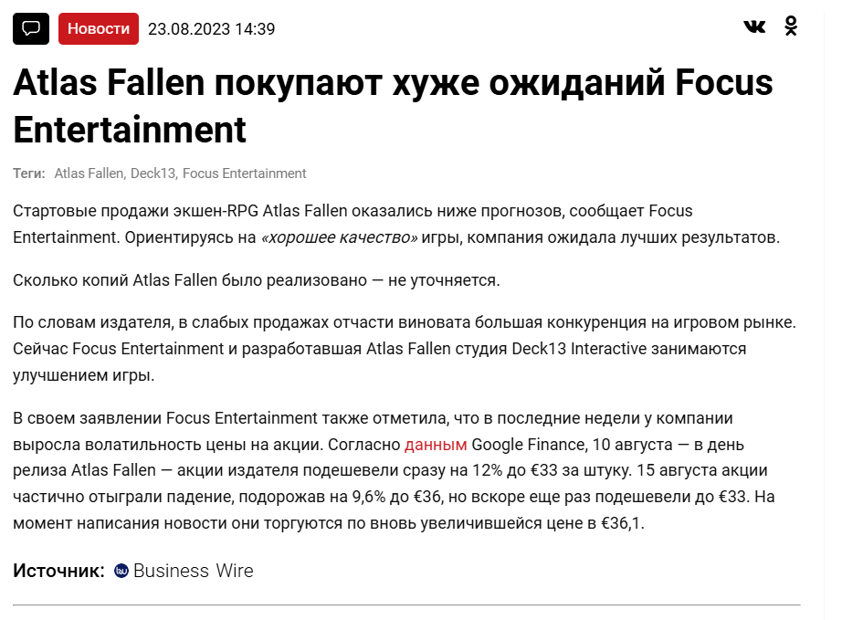Я думаю это мало вероятно, ведь следующая игра студии Atlas Fallen провалилась. Поэтому Deck13 акцентирует свое внимание на проектах из Spotlight.