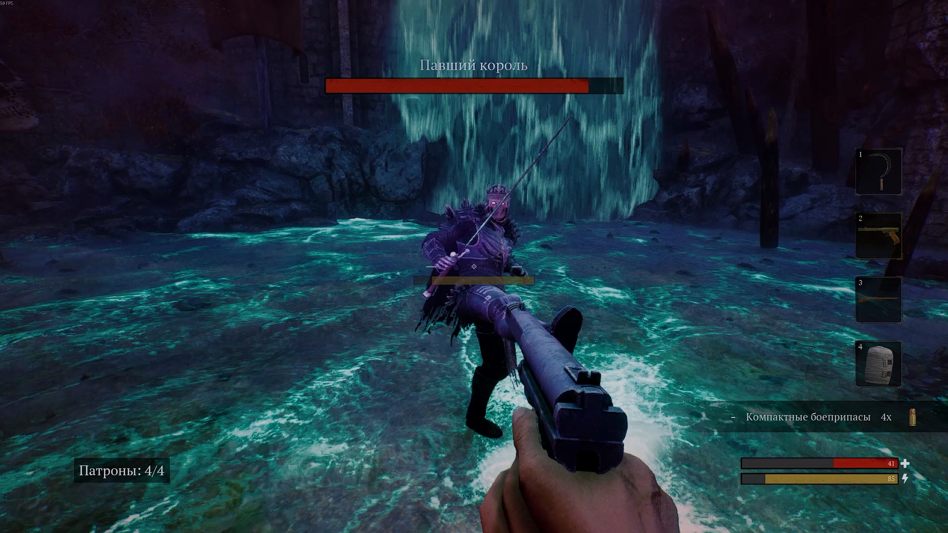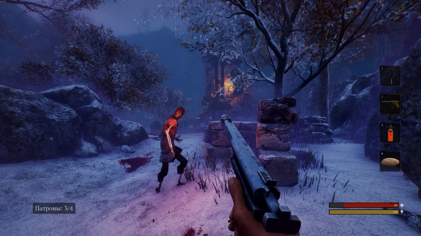 И ещё один важный момент об огнестрельном оружии — перезарядка у него довольно продолжительная, особенно у винтовки и отменить её, переключившись на другое оружие, нельзя. Так что, за количеством боеприпасов в обойме стоит следить, чтобы не оказаться внезапно скованным получасовой анимацией перезарядки винтовки, с ужасом взирая на дружелюбно подмигивающего вам оборотня. Использование расходников, к слову, тоже блокирует игрока в своей анимации.