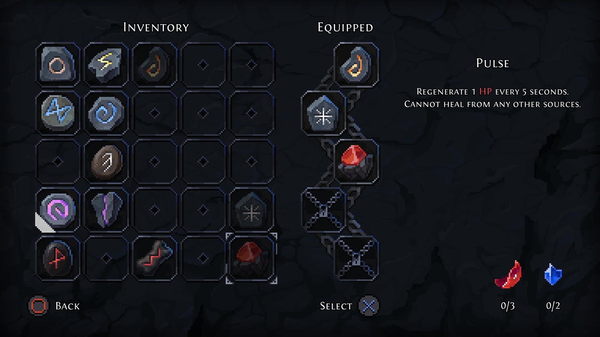 О рунах стоит сказать отдельно, поскольку они очень заметно влияют на геймплей. Одна добавляет атакам дальнобойный эффект, другая — с шансом бьёт молнией при попадании, третья — даёт шанс проигнорить урон, четвёртая — возможнсть не получить урон с кулдауном в 15 секунд, пятая — даёт постоянный реген, но блокирует любые другие источники лечения и т. д. Рун здесь немалое количество и радует, что они дают различные интересные эффекты, а не просто прибавляют плюсы к характеристикам.