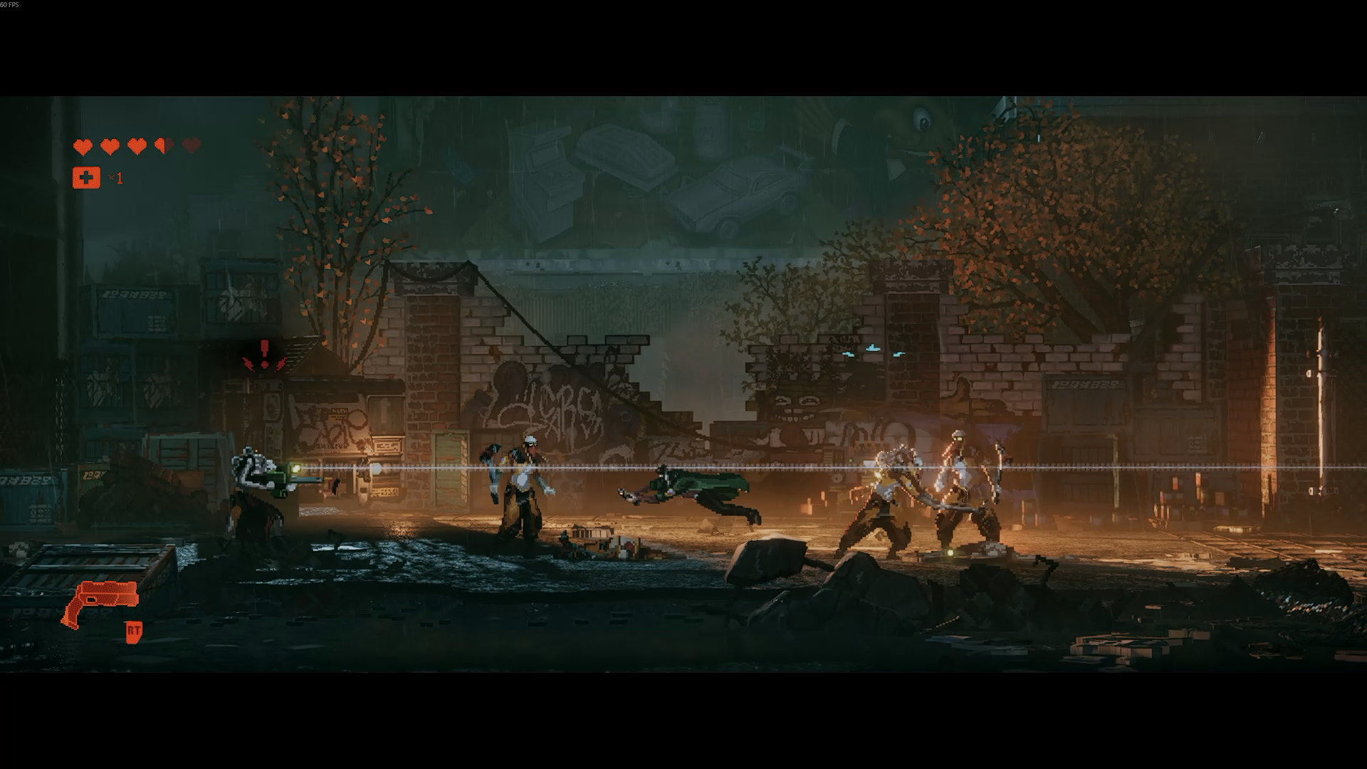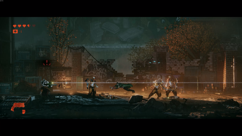 Вторая демка, в которую я сыграл, представляет собой двухмерный пиксельный экшн-платформер (судя по демке, больше экшн), в нуарной киберпанковой стилистике.