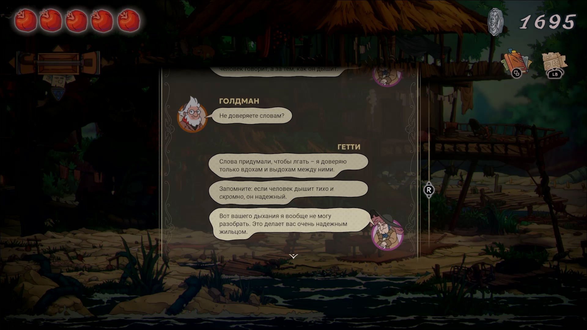 Подытоживая, The Ethernal Life of Goldman для любителей метроидваний может стать приятной игрой, с несколько необычной концепцией способностей через апгрейды и комбинаторику трости. Аудио и визуальная составляющие весьма приятны. В плане геймплея, незначительные придирки, которые могут оказаться безосновательными в полной версии игры. И единственное, что не зашло (очень не зашло) — это долгие и бессодержательные диалоги, плюс весьма объёмные записки с лором.