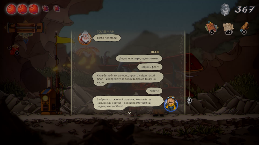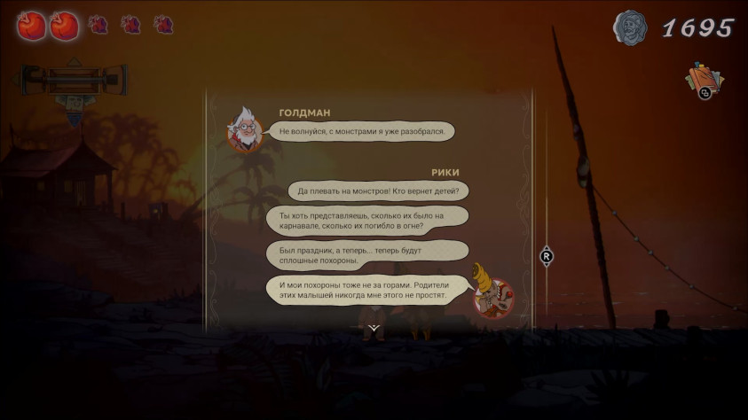 Что касается аудиовизуальной составляющей, то визуал здесь, как я уже говорил, двухмерный. А в плане стилизации, он мне напомнил диснеевские мультфильмы примерно 70-х годов (+/-). Музыкальное сопровождение годное, но я бы не сказал, что оно чем-то выделяется. Озвучка персонажей рассказчиков, которые порой вклиниваются в геймплей, мне понравилась.
