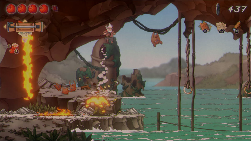 В базовом виде, это просто трость, хотя она и позволяет прыгать выше обычного прыжка, если отталкиваться с её помощью, а также разбираться с врагами, прыгая по ним. В этом плане, игра мне сразу же напомнила DuckTales (про дядю Скруджа).