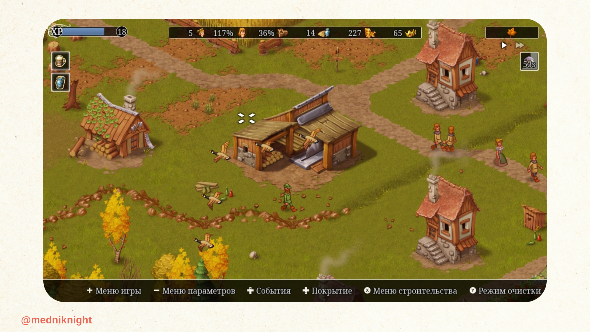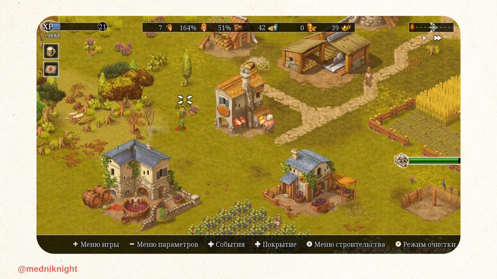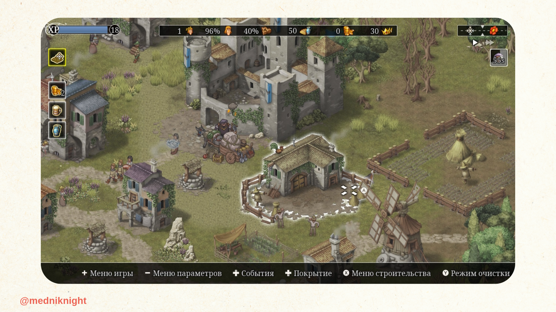 Я заново знакомился с Townsmen на Nintendo Switch и теперь считаю эту платформу наилучшей для проекта. Как пример, впервые игру на портативной консоли я запустил в поезде до всё того же Воронежа. Так незаметно пролетели несколько часов дороги, пока я проходил кампанию и баловался в бесконечном режиме.