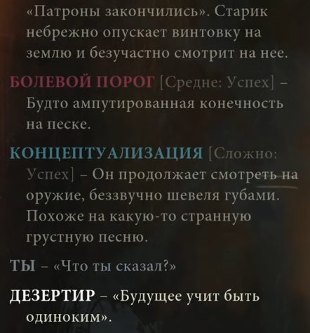Причём не так важно, сколько неудач придётся перенести. Ежели перед тобой стоит сложная цель, которой ты хочешь добиться всем своим сердцем, ради её достижения нужно отбросить страх ошибаться. И это Disco Elysium тоже наглядно демонстрирует — через скиллчеки.