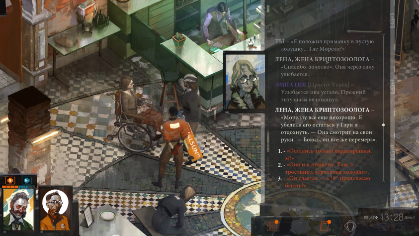 Однако в Disco Elysium проверки нужны не затем, чтобы в случае чего наказать игрока. Практически всякое событие здесь предполагает несколько исходов — и нередко открывшийся после провала вариант будет даже интереснее, чем изначально планируемый.