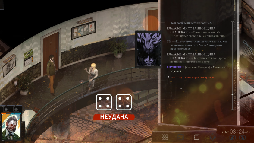 Думаю, в обсуждении любых игр, где в диалогах присутствуют проверки навыков и броски кубиков, трудно не наткнуться на людей, которых подобные механики откровенно раздражают. Мол, при провалах теряется часть контента, а они за него, между прочим, заплатили. И, вероятно, эта мысль имеет право на существование — особенно когда сорванному действию взамен не предлагается никакая альтернатива. Более того, такая негативная реакция вполне естественна, ведь неудача всегда ассоциируется у нас с чем-то неприятным.