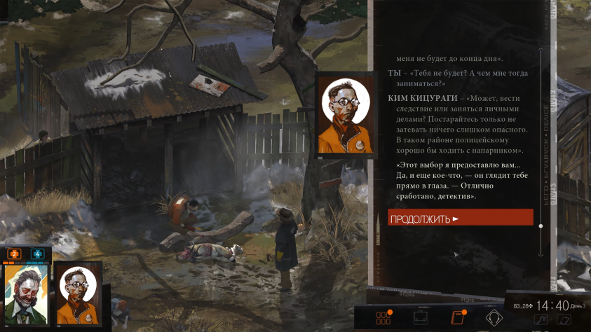 К слову, Роберт Курвиц, когда полностью проходил финальный билд проекта перед релизом, сам ощутил эту дружескую связь с Кицураги и его поддержку. Эстонский разработчик назвал Disco Elysium «симулятором идеального друга». В атмосфере безотрадного положения Мартинеза, несправедливости и общей безнадёжности именно Ким помогает главному герою продираться через весь этот мрак. Положившись на человека вроде него, ты понимаешь: даже если мир проклят, в нём ты не один.