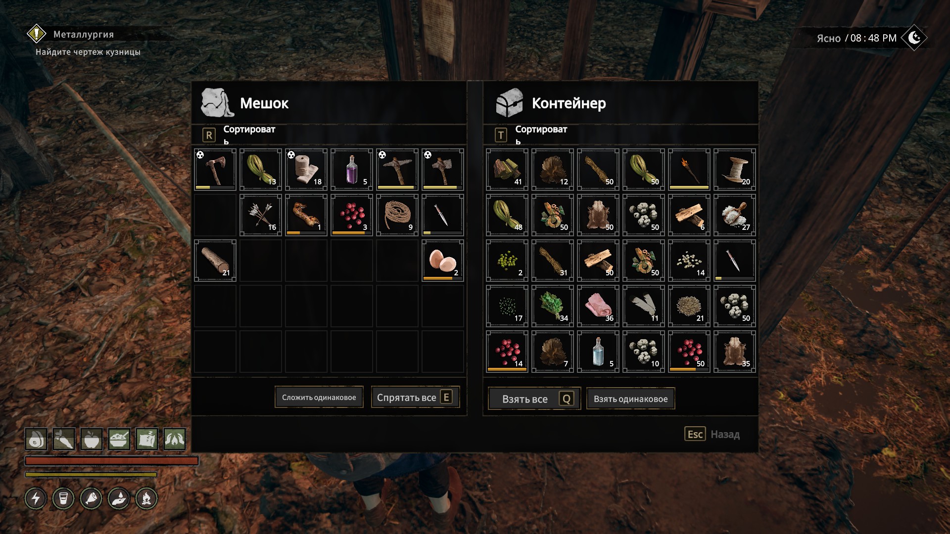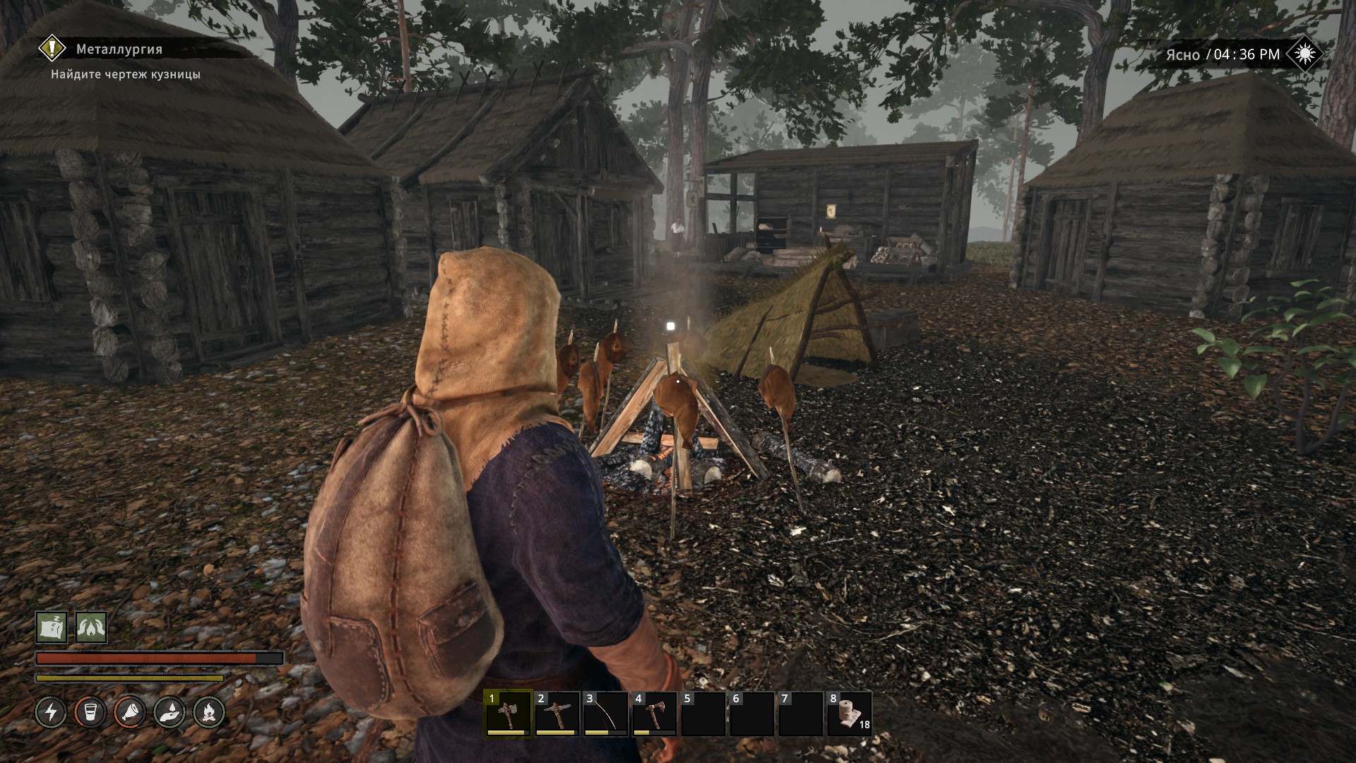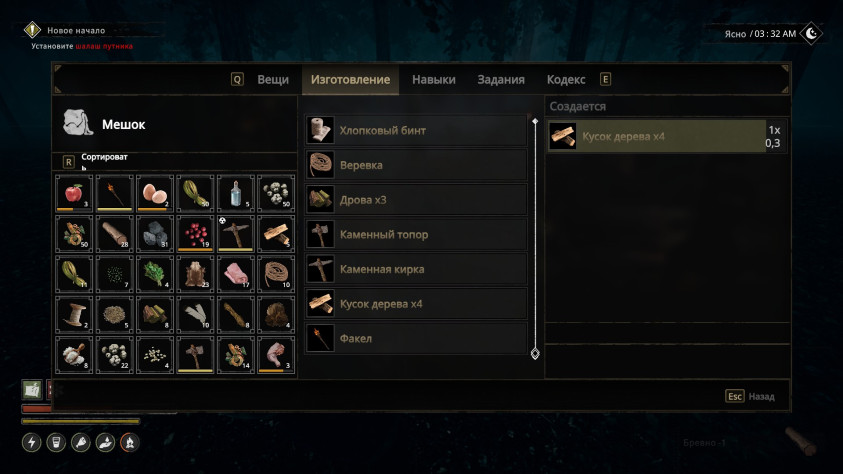 Создавать и получать вещички можно разными путями. Есть крафт базовой мелочевки героем. На костре можно наготовить жратвы.