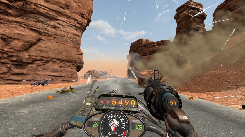 В общем, Hell Road VR — интересная игра про поездку на байке и отстреливание мутантов.