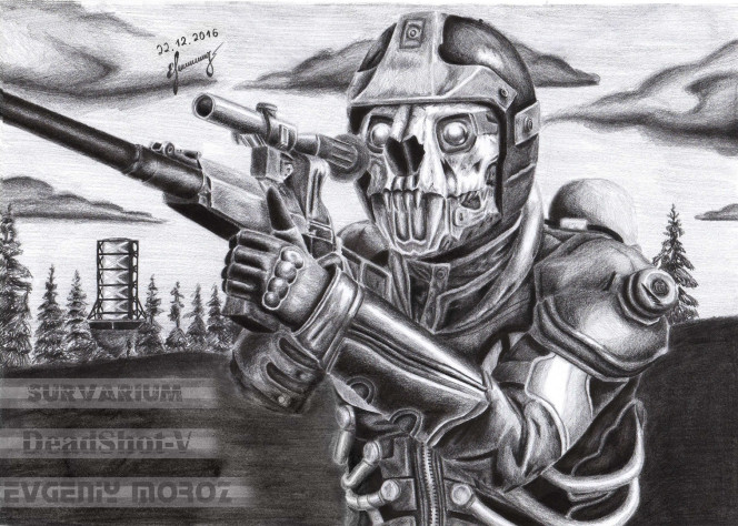 Мой старенький рисунок по многопользовательской игре Survarium. Я провёл тут больше 1000 часов, если не больше. Это была одна из немногих онлайн игр, которая мне нравилась. Любил я её больше чем Battlefield-ы и Call of Duty. Да, контента было очень мало, но мне нравилась сталкерская атмосфера и то, как приятно ощущалась стрельба и оружие в руках.