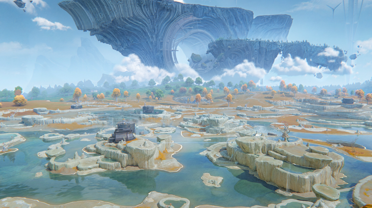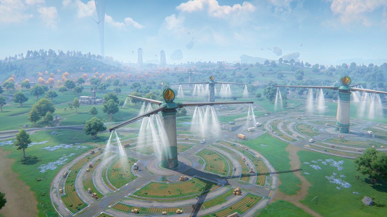 Игровая карта выглядит довольно интересно. Сейчас это три острова на разных уровнях высоты, которые скорее отделают участки не давая возможности стрелять с хайграунда, нежели дают территориальное преимущество. К тому же выглядит это красиво, особенно при полете на ульте одного из персонажей. Каждый остров в себе содержит города и поля с обширным количеством деревьев и камней, что вполне соответствует локациям молодой игры. (сравни тому же Пабгу или Фортнайту на начальных этапах) Но есть и поселения городского типа, многоэтажностью которые, к счастью, не обладают, но и могут все же быть тактически полезны. Разрушаемостью или прострелом, увы, игра похвастаться не может.