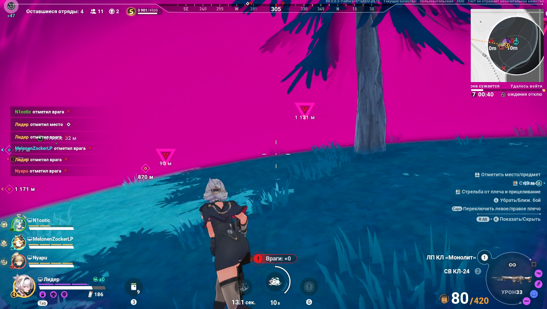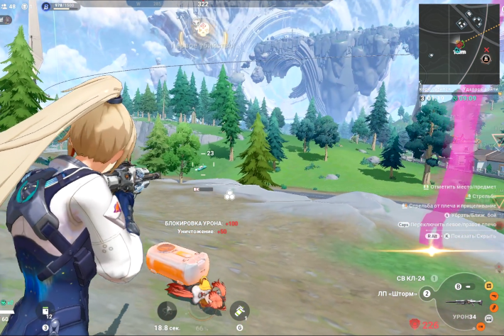 Интерфейс в игре напоминает своими элементами и упрощенностью Апекс, но все же более умеренный как по мне, без непрозрачной подложки. Но для большинства, естественно, аналогии всплывут с тем же геншином, что не есть плохо. Единственное, что на мой взгляд было бы уместно, это сместить иконки скиллов и гранат в сторону, чтобы они иногда не загораживали сами понимаете что. (¬‿¬ )