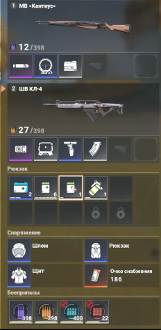 Инвентарь является смесью всего лучшего от батлроялей. Иными словами патроны ничего не весят и висят отдельным списком, оружие в два слота расположено отдельно, а все остальное важное располагается в сумке, где теперь всегда есть свободное место под хламьё. (Напомню, обвесы цепляются автоматом, как подбираются и доп плюшки)