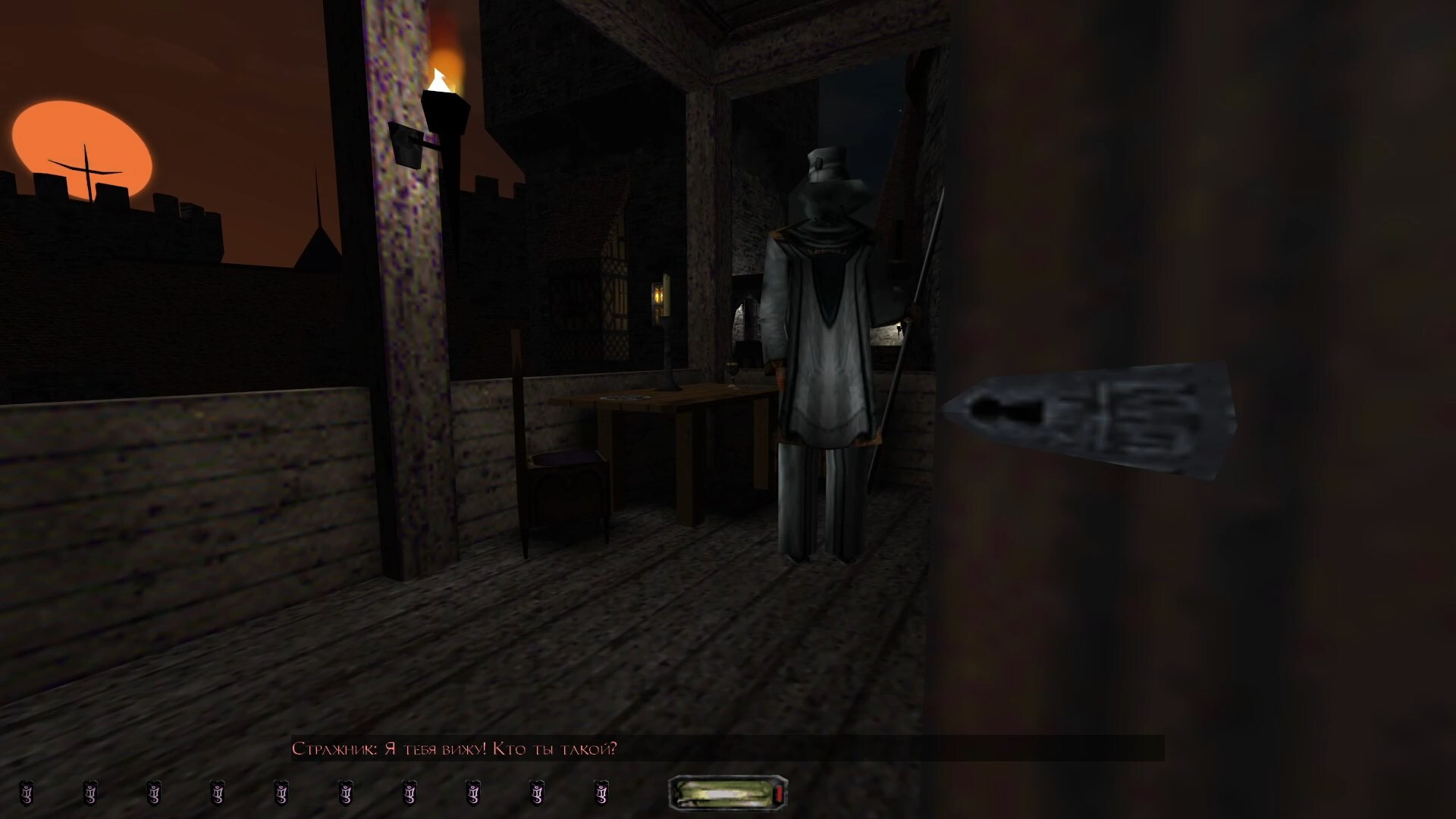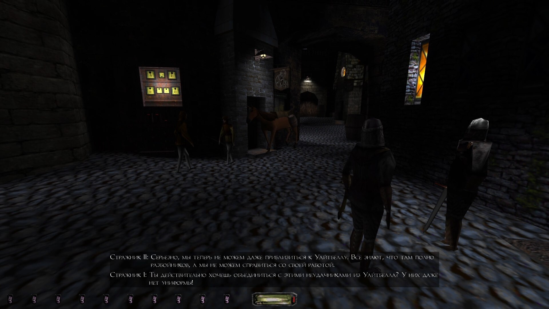 Есть, правда, в Воре вещи, которые сегодняшнего игрока могут и отпугнуть. Я имею в виду, помимо устаревшей графики, само собой. Например, это наличие реальной темноты здесь. Причём тут какой момент. Нам темно, противнику темно, мы ведь Вор, для нас это самая лучшая среда. Но это означает, что часть времени мы так или иначе будем вглядываться в мрак и пытаться понять — это я всё же настройки яркости должен подкрутить, или игра просто демонстрирует свою глубину? В общем, специфический геймплей, и мне он нравится.