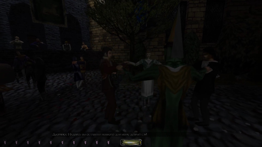 А ещё новые анимации, стражники теперь умеют сидеть, например, чего не умели прежде. И новые модельки, как нейтральные, так и нет. В седьмой миссии — это не спойлеры — есть целый мирный сегмент с празднующей толпой, и там прям танцы, пляски, музыка, разговоры — просто нечто. В видео, если что, я это привожу прям отдельным отрывком. Здесь могу лишь скриншот приложить: