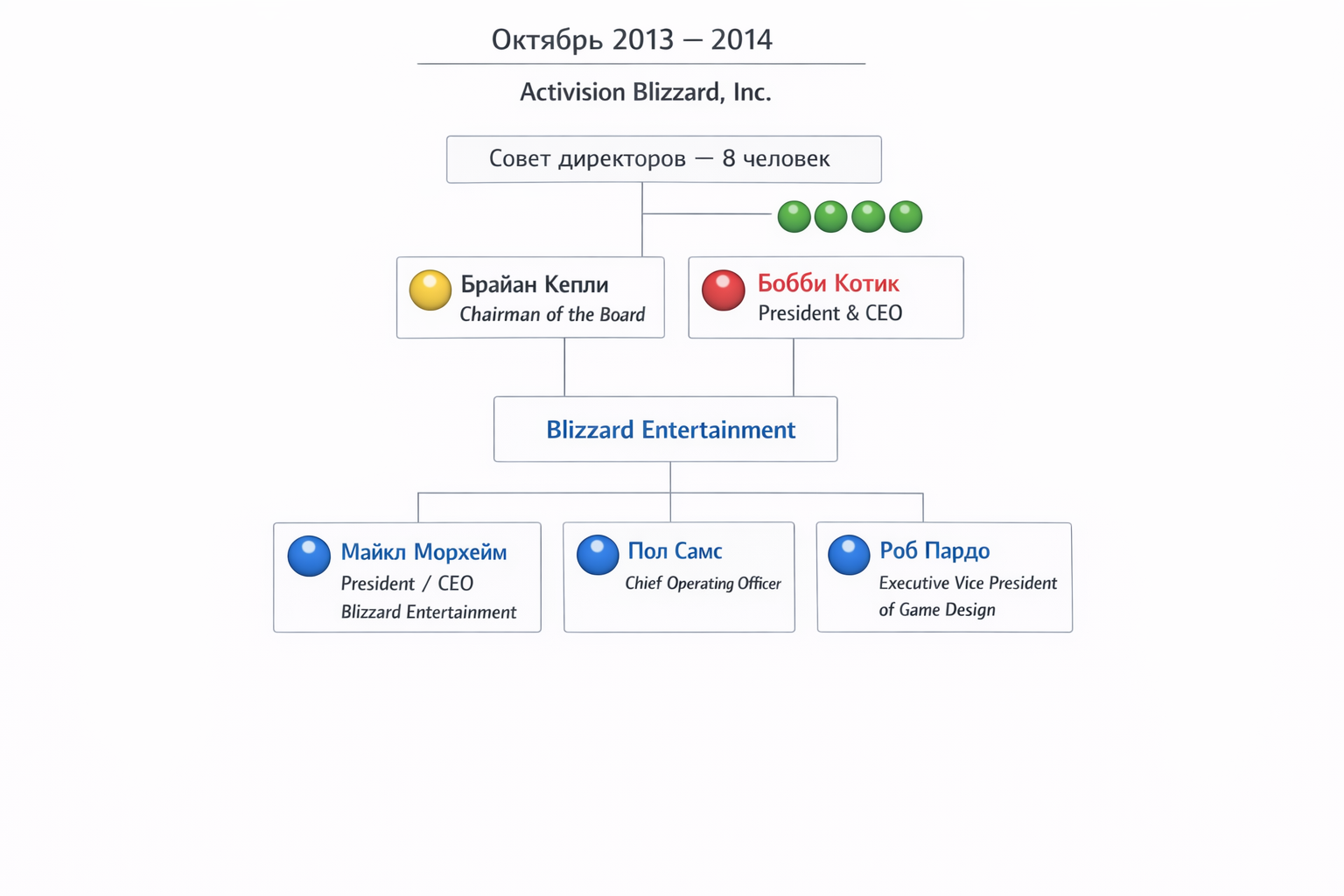 В 2012 в WoW играли 12 миллионов пользователей, а потом эта цифра начала падать. Бобби Котика до этого момента устраивал рост прибыли Blizzard. Но когда море денег от World of Warcraft начало мелеть, Бобби начал реализовывать свой план по захвату власти.