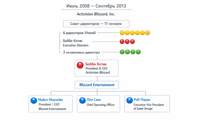 В 1994 году компанию Blizzard купила Vivendi, пообещав студии полную свободу. А в 2007 году Vivendi приобрела компанию Бобби Котика — человека, который позже сыграет важную роль в судьбе Blizzard.