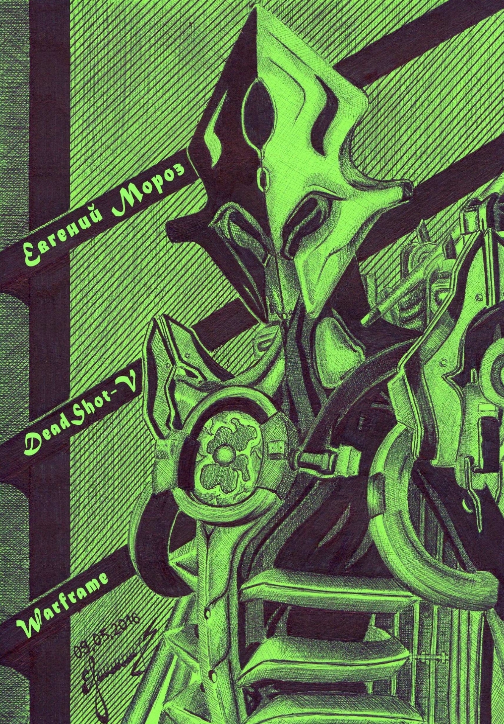 Мой старенький рисунок по игре Warframe. Когда только вышел этот фрейм я очень фанател от него. Мне нравилось усыплять врагов и делать им критические выстрелы в голову. А когда нужно было бороться с толпами недругов, то на помощь приходила ульта, которая разрезала все вражеские элементы в приличном радиусе.