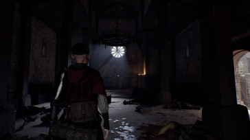 В самом деле, игра мне понравилась. 1348 Ex Voto отчётливо напоминает Hellblade, в особенности своим стремлением вдохнуть в картинку всё ещё очень нехарактерный для видеоигр фотореализм. Да, графически проект разваливается, однако арт-дирекшн радует — зрительно произведение апеллирует к образам высокого средневековья, исполняя их наиболее аутентично, зато композиционно позволяет себе уйти в безрассудство с многоярусными замками-лабиринтами, где даже нужник для слуг сложен из обработанного камня. Фигура главной героини из той же секвенции — она воспринимается уместным атрибутом возводимой эстетики, и, по большому счёту, лишь историческая правда заставляет смотреть на неё косо.