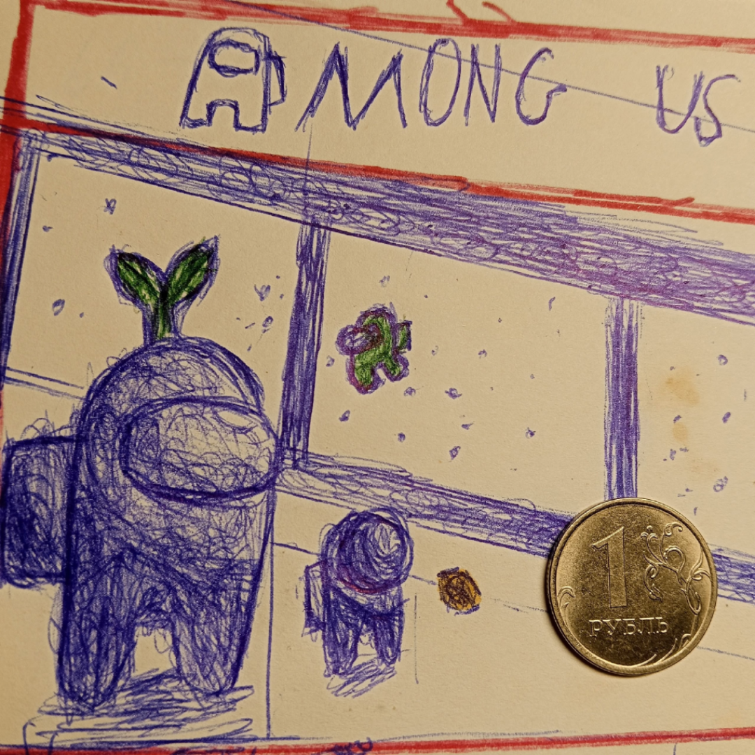 Мой рисунок 5-летней давности. Я положил монетку рядом чтобы вы понимали масштаб.