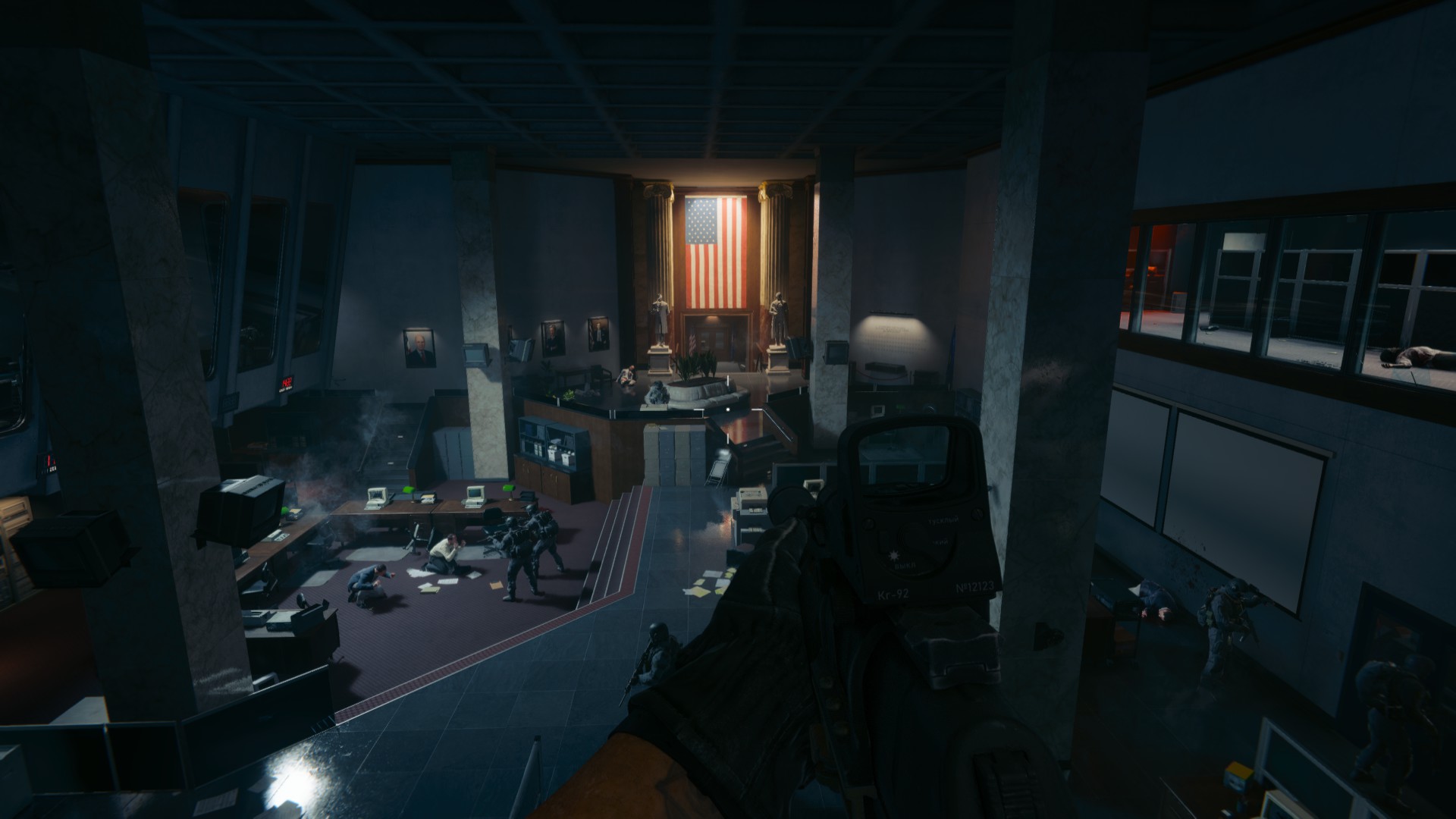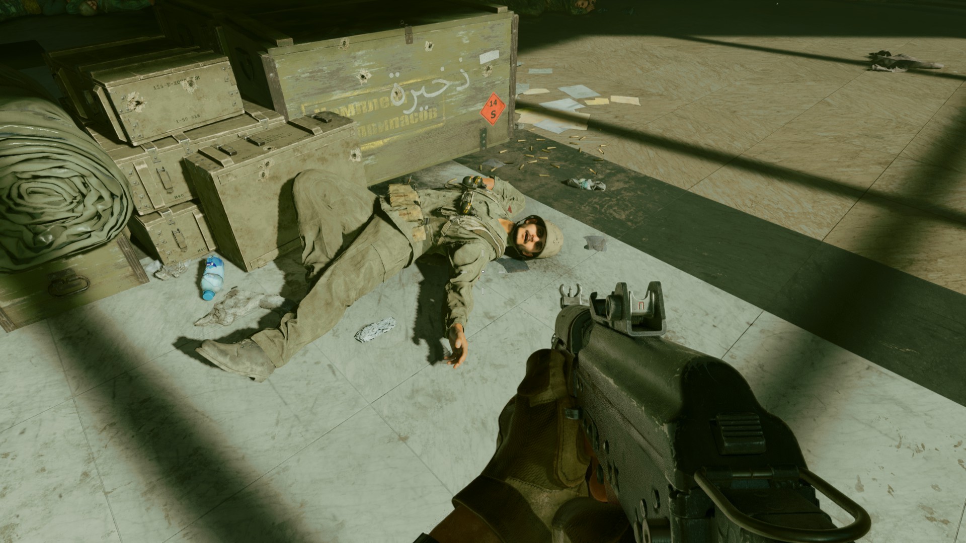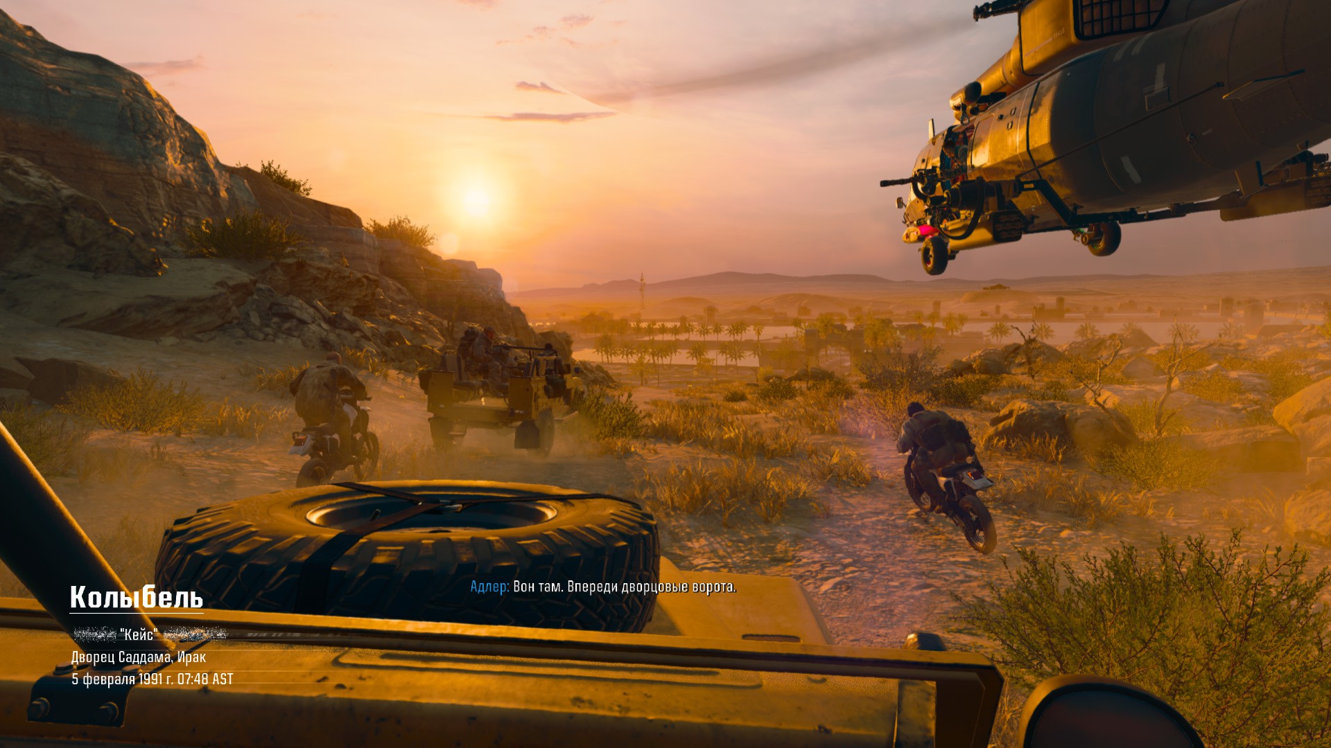 В миссии «Колыбель» мы примем участие в штурме одного из дворцов Саддама Хусейна. Один из наших напарников иронично отмечает, что Хусейн — коллекционер дворцов мирового класса. Их много даже на одной этой карте. Алави был уверен, что знает, какой именно? [содержит биологическое оружие]