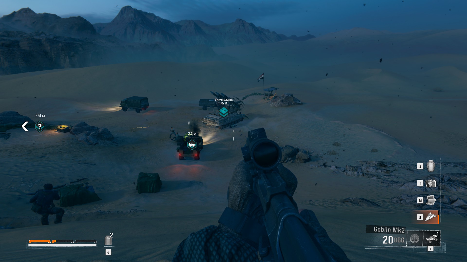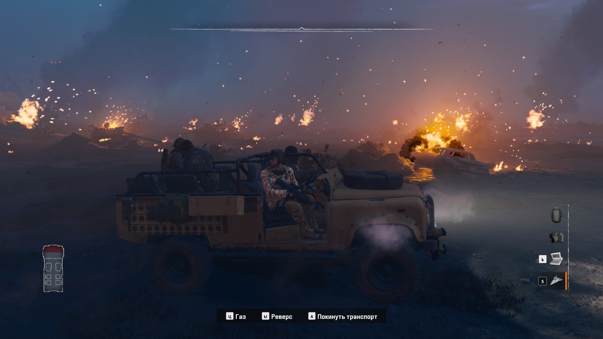 Для передвижения по местности мы будем управлять внедорожником Land Rover Defender. Во время операции «Буря в пустыне» эти внедорожники доказали свою эффективность в преодолении песчаных дюн и труднопроходимых пустынных дорог. Их способность выдерживать экстремальную жару и песчаную среду сделала их бесценным активом для британских войск в регионе. Американским военным британский внедорожник нравился больше, чем их HMMWV, и также ими пользовались. В 1992 году, после войны в Персидском заливе, 75-й полк рейнджеров армии США заменил Ford M151 на двенадцать Land Rover Defender Model 110, которые официально получили обозначение Ranger Special Operations Vehicle.