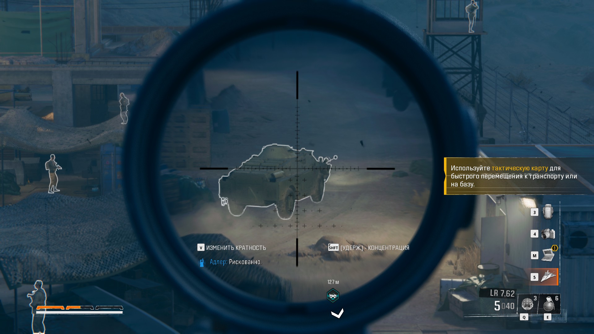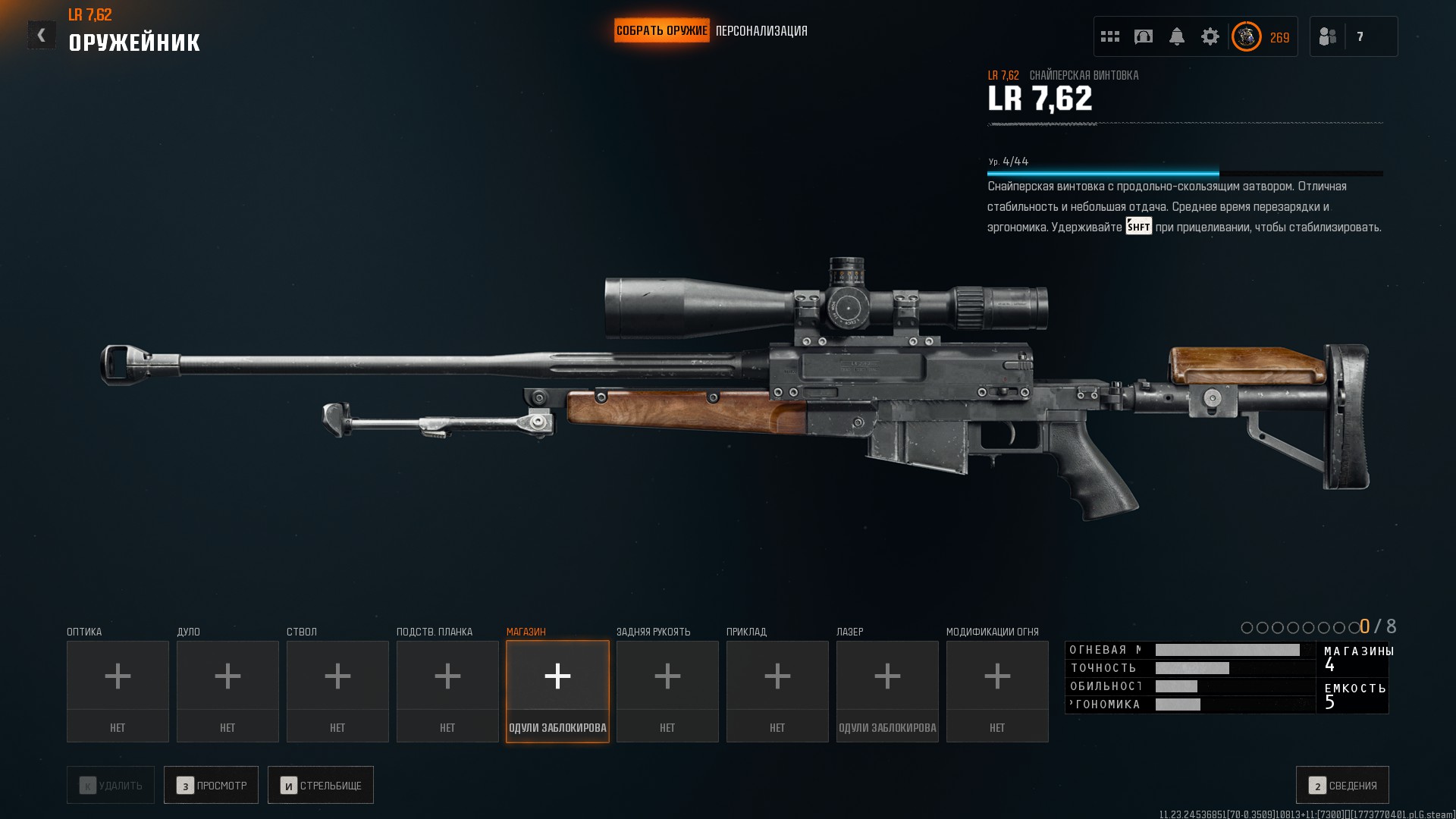 Винтовка PGM Ultima Ratio представлена под обозначением LR 7.62. Она в основном анахронична, поскольку была впервые выпущена в 1991 году, в то время как действие игры происходит в начале того же года. На Ultima Ratio можно установить приклад и пистолетную рукоятку от более крупной Hécate II, а также 7-зарядный магазин, соответствующий вместимости этой винтовки. Анахроничная планка для аксессуаров PGM является доступной опцией кастомизации. PGM Ultima Ratio — французская снайперская винтовка, производящаяся оружейной компанией PGM Précision. Она была разработана специалистами частной французской оружейной компании PGM Precision в 1991 году по заказу Министерства обороны Франции. С 1992 года оружие находится на вооружении армии и полиции Франции, а также ряда других государств.