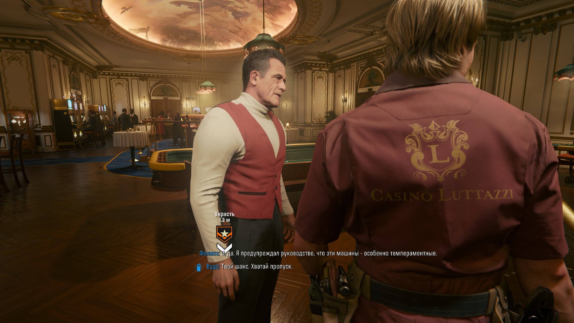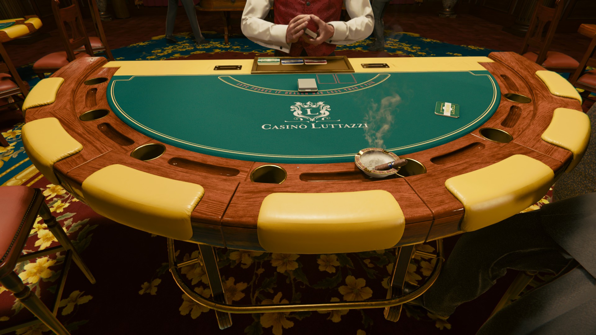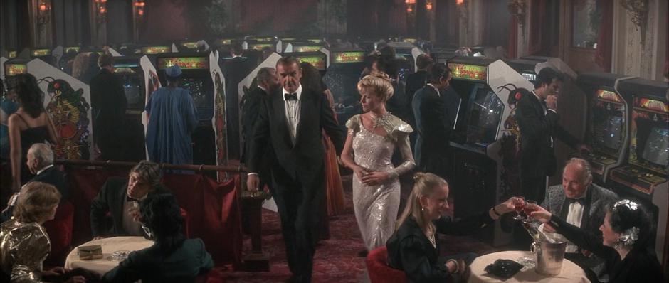 Подтверждением того, что за основу было взято Казино Монте-Карло можно считать наличие характерного символа казино, который можно увидеть в интерьере, на игровых столах и форме сотрудников. Похожий символ есть и у Казино Монте-Карло.