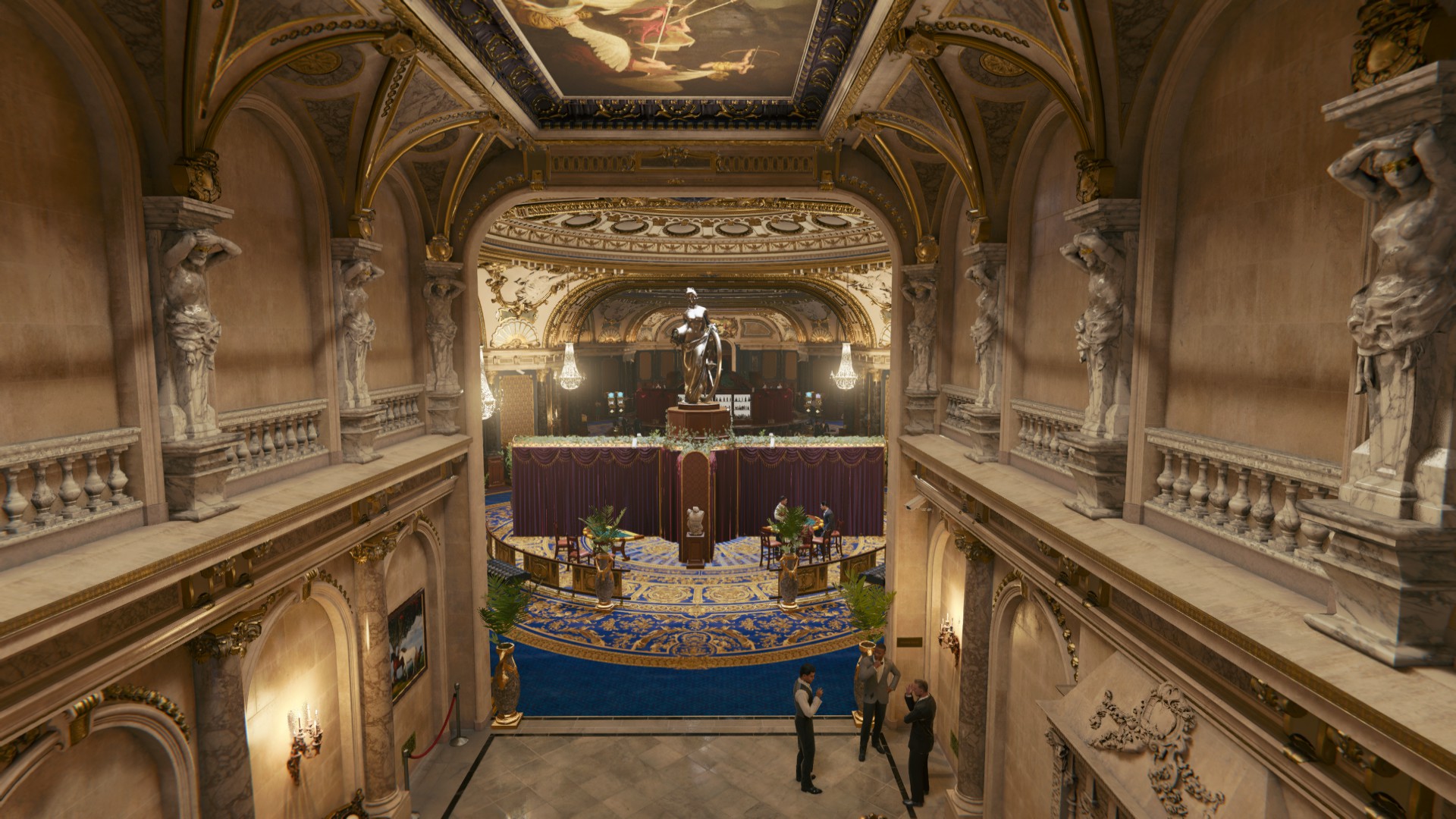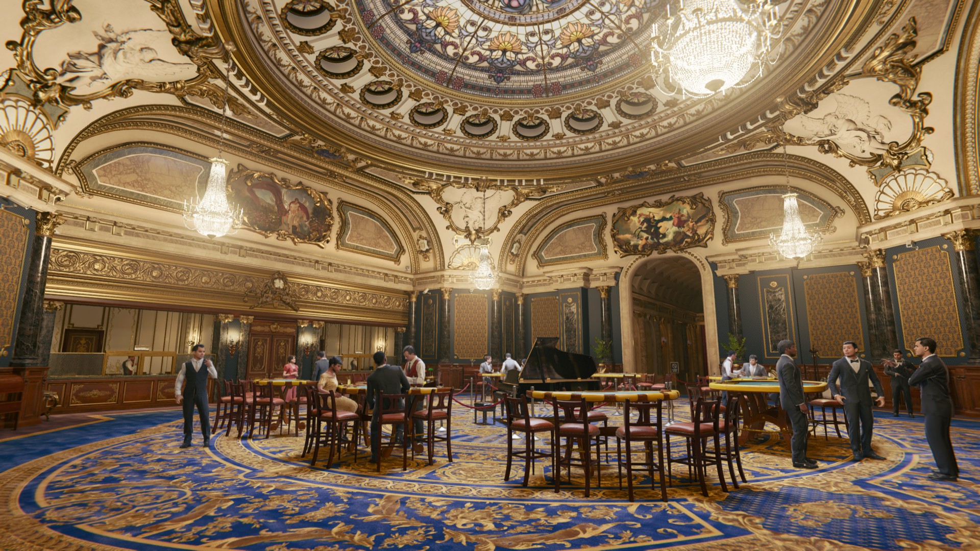 По внутреннему убранству могу предположить, что казино было создано по примеру казино Монте-Карло, которое расположено в Монако. Это легендарный игорно-развлекательный комплекс, расположенный в сердце одноименного княжества Монако, который выполнен в роскошном стиле боз-ар, гармонично сочетающем традиции итальянского ренессанса и французского барокко. Здание, спроектированное Шарлем Гарнье, поражает воображение своим величием: атриум с мраморными колоннами, залы с фресками, скульптурами и позолотой создают атмосферу торжественности и элитарности.