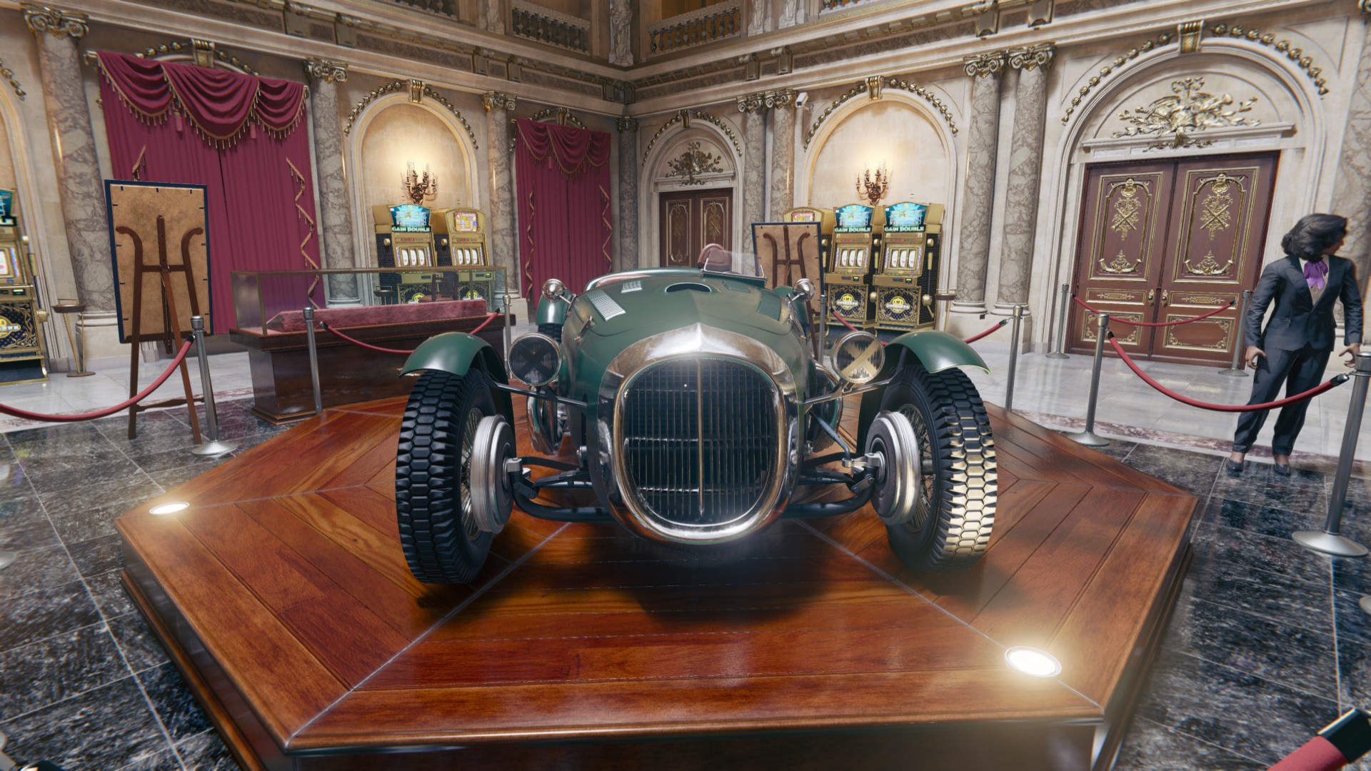 В самом казино можно увидеть выставленный на показ старинный спортивный автомобиль, который внешне мне напоминает следующие автомобили: