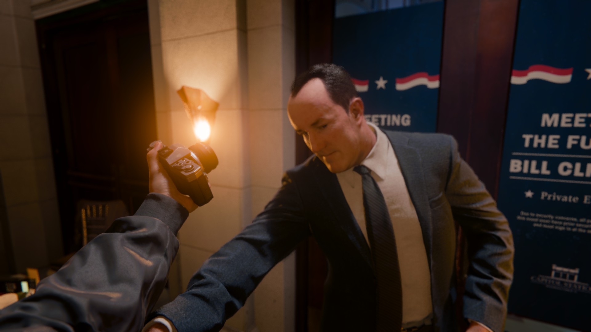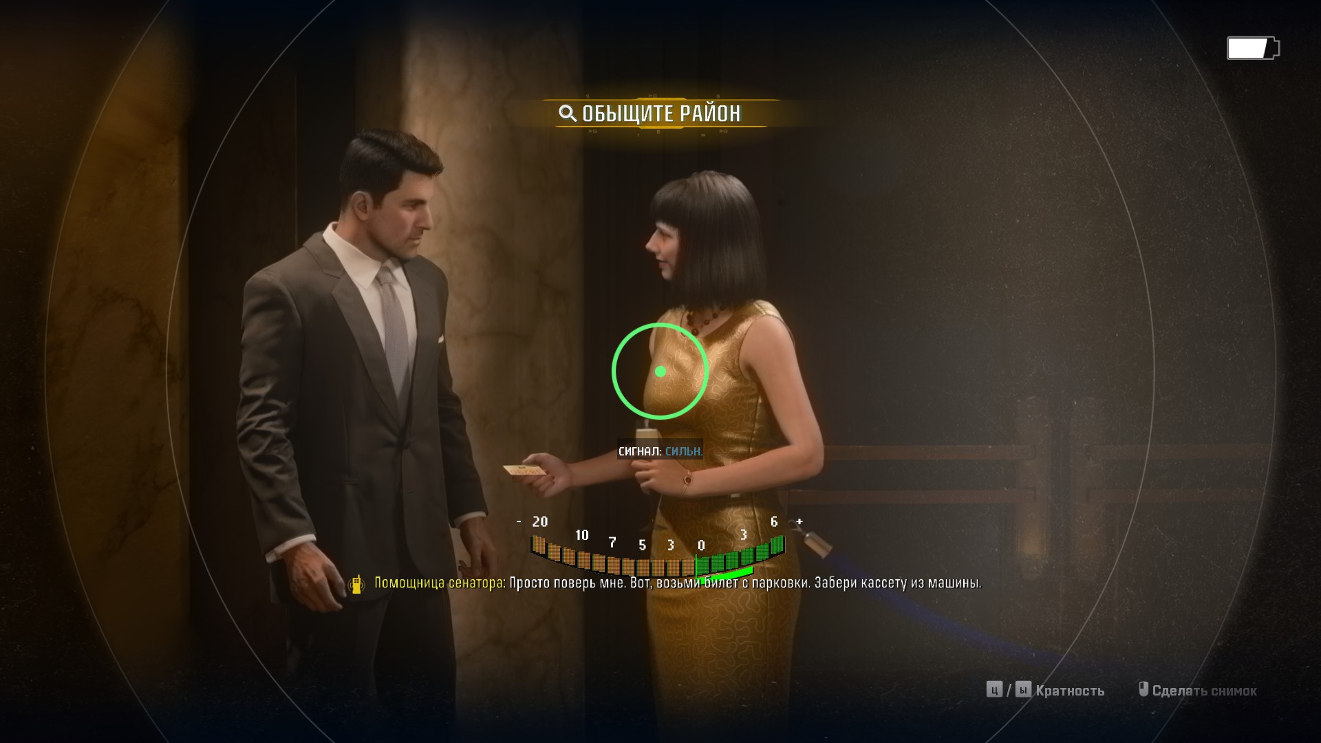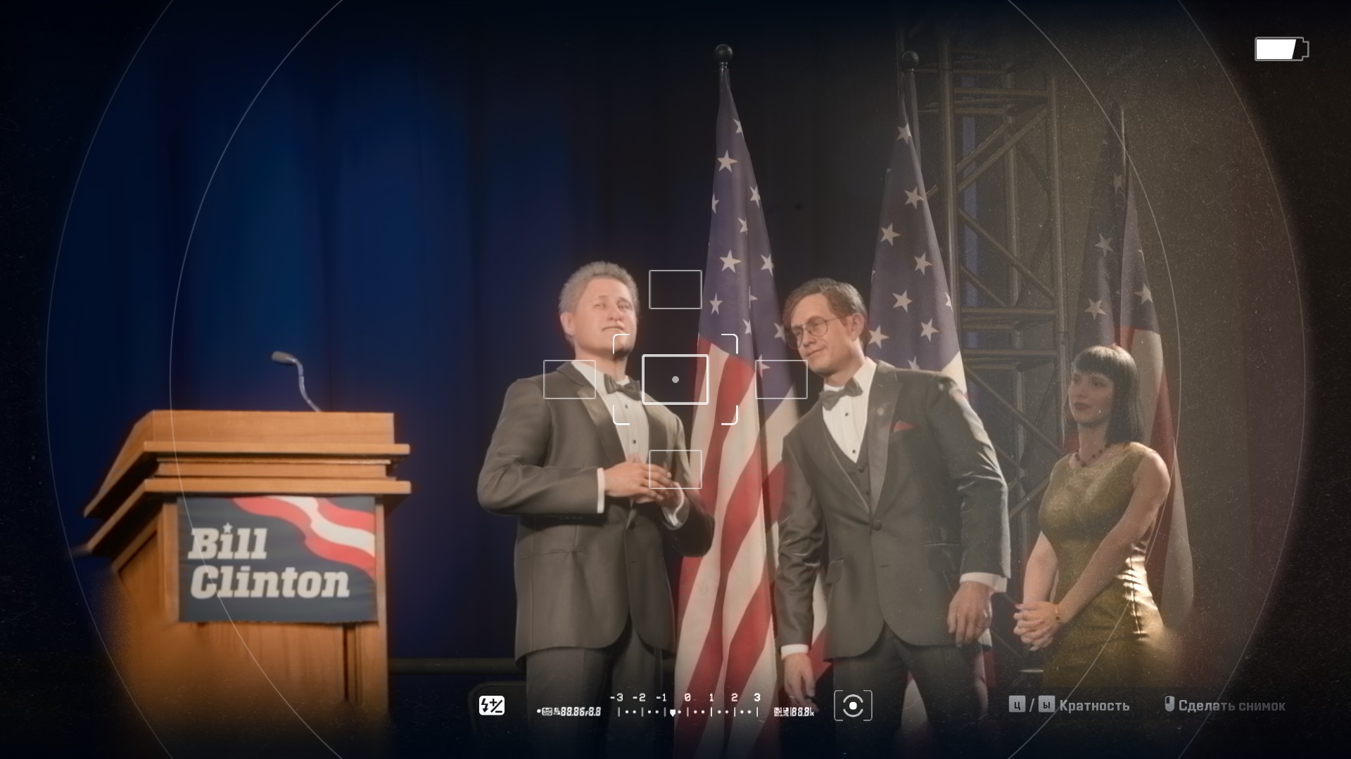 Для слежки и снятие сетчатки, главный герой использует специальную камеру.