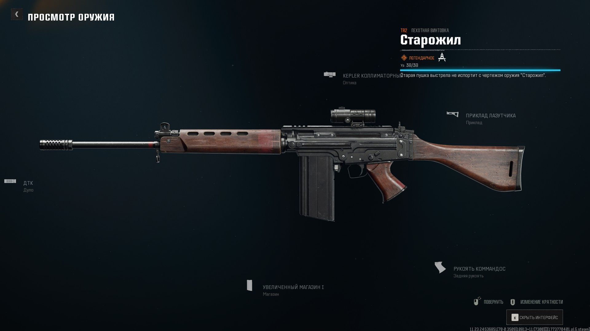 - Нижняя/задняя часть рамки выполнена в стиле AEK-919K «Каштан»;