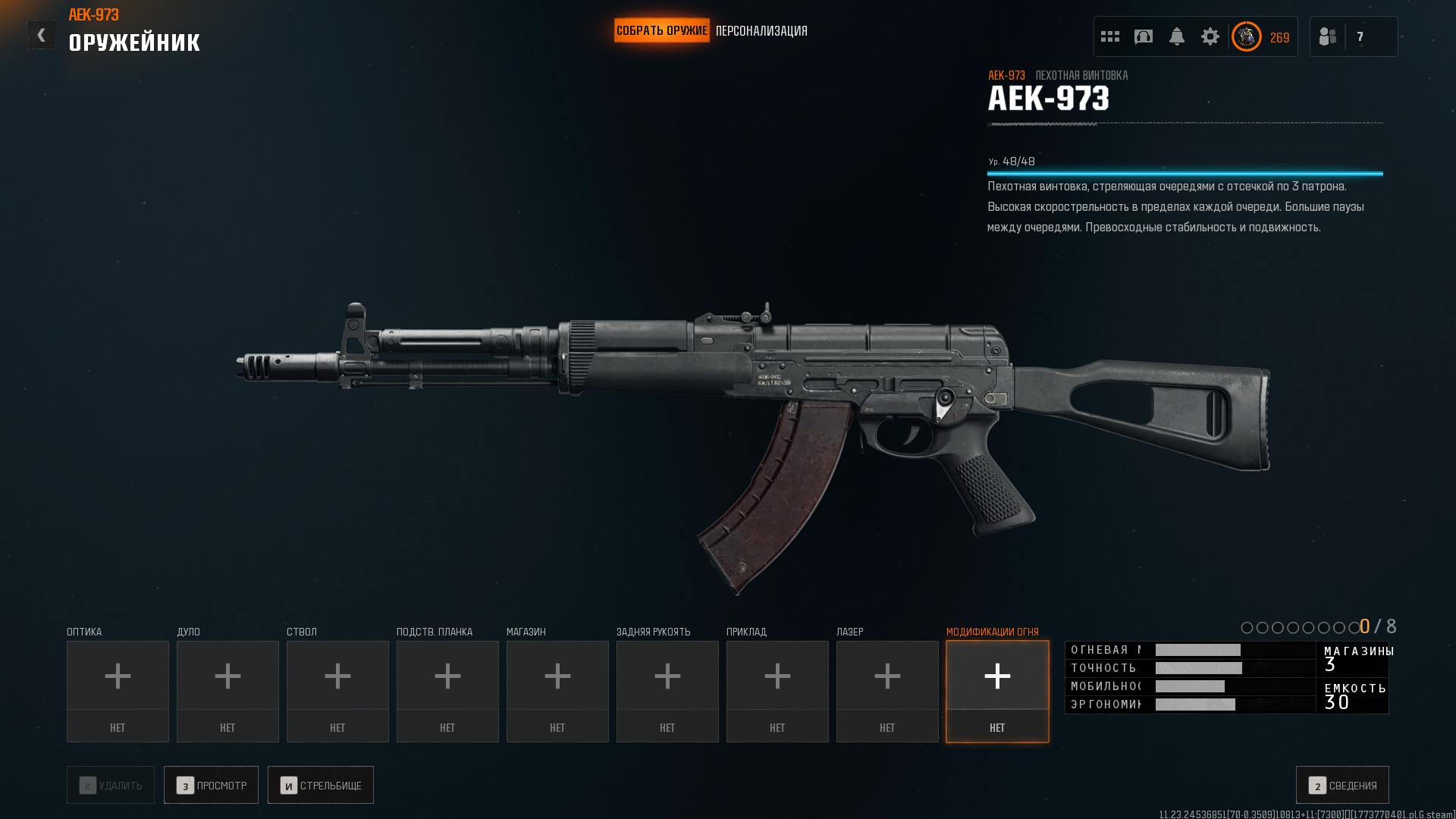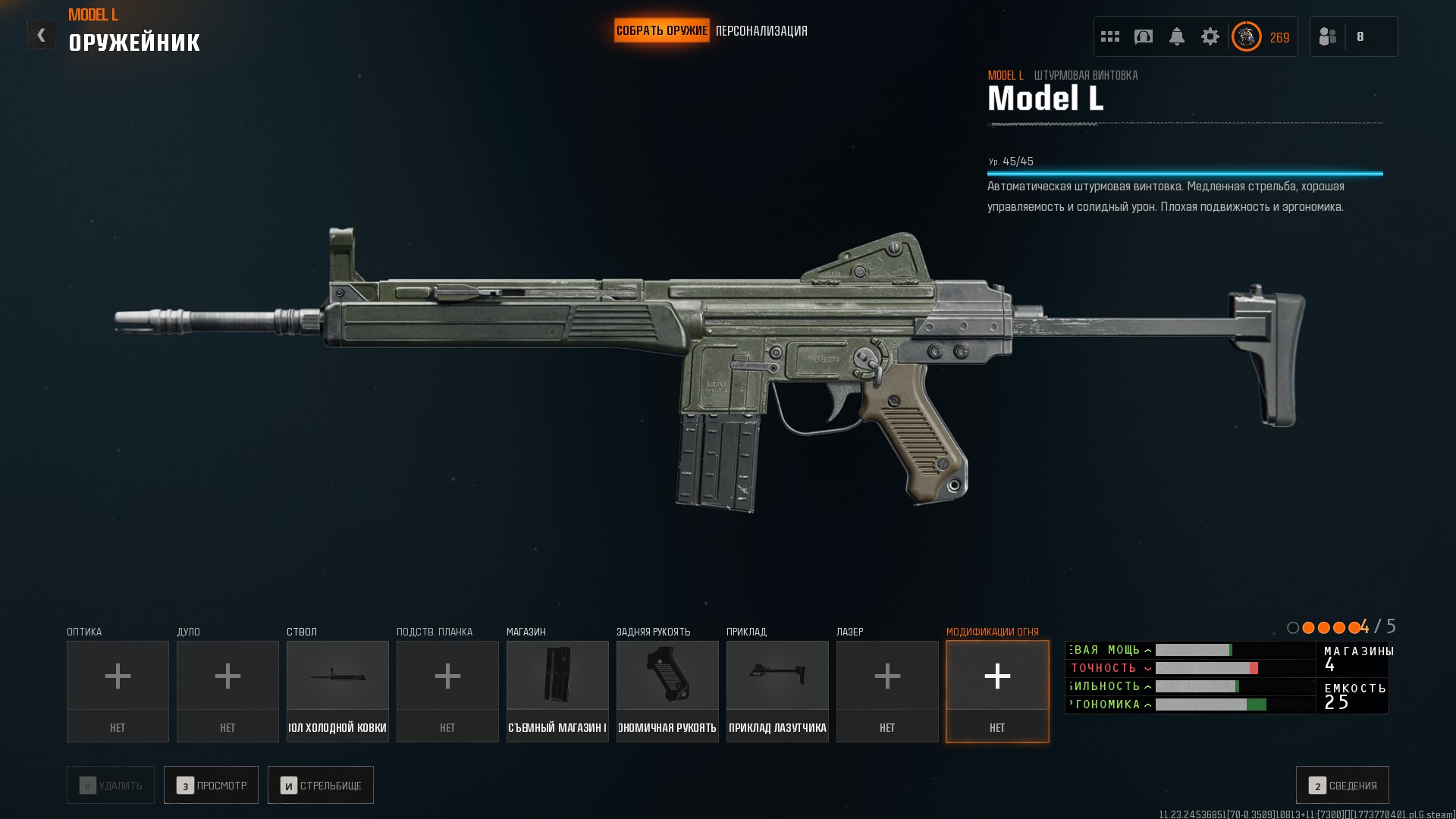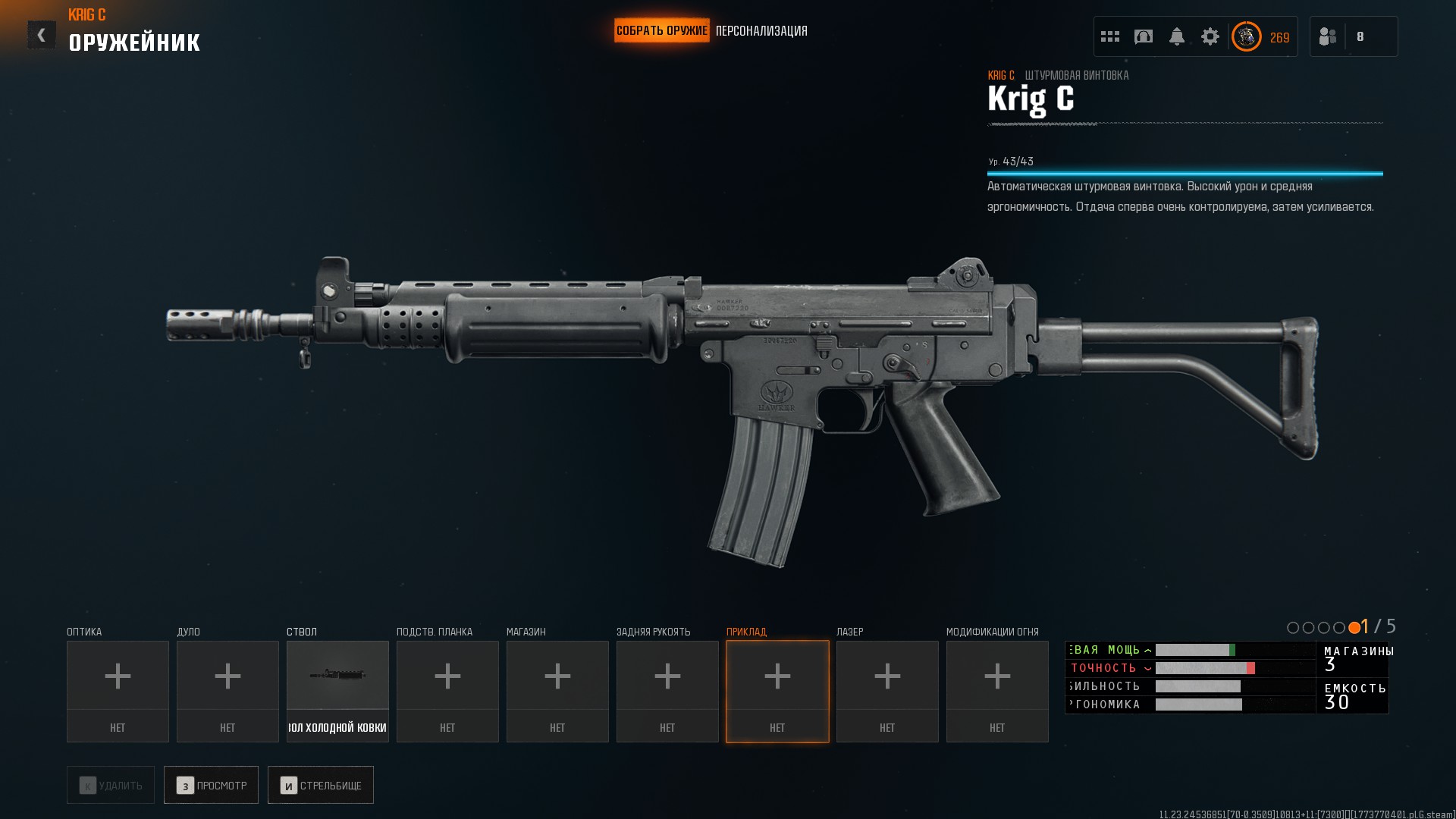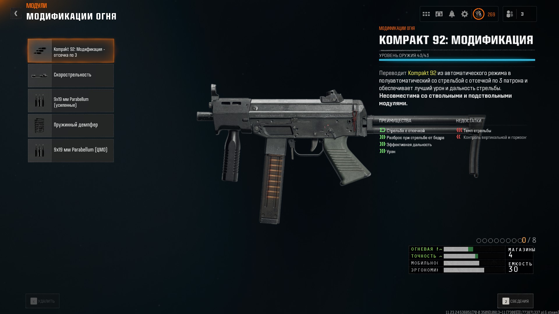 Обидно ещё и то, что для ряда пушек крайне мало модулей — для Olympia всего два модуля. В сравнении с BOCW, в котором на Маршал (типа обрез в слоте пистолетов), можно было поставить: прицел, ЛЦУ, поставить длинный или короткий ствол, сменить тип патронов, или сделать акимбо вариант.
