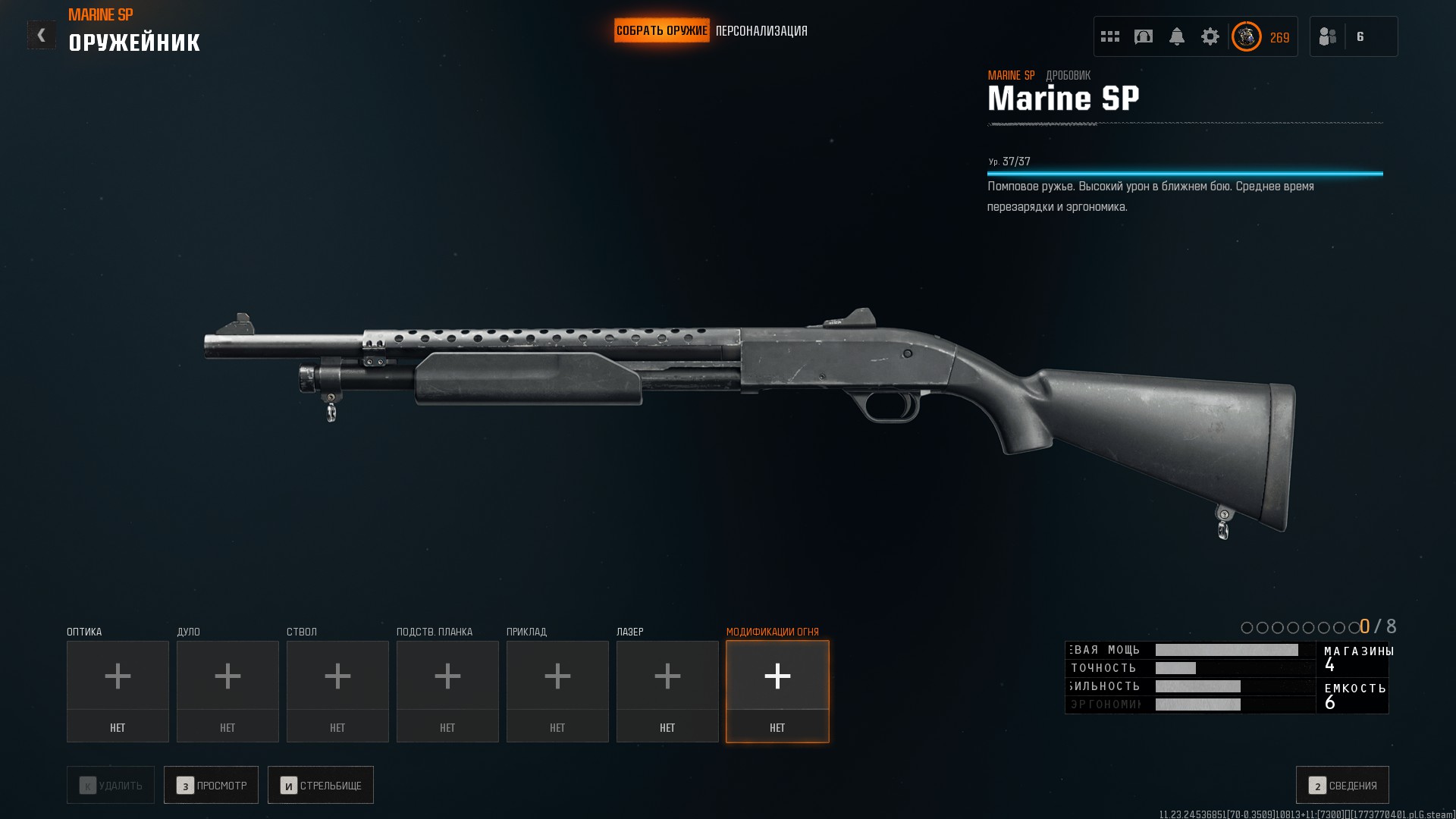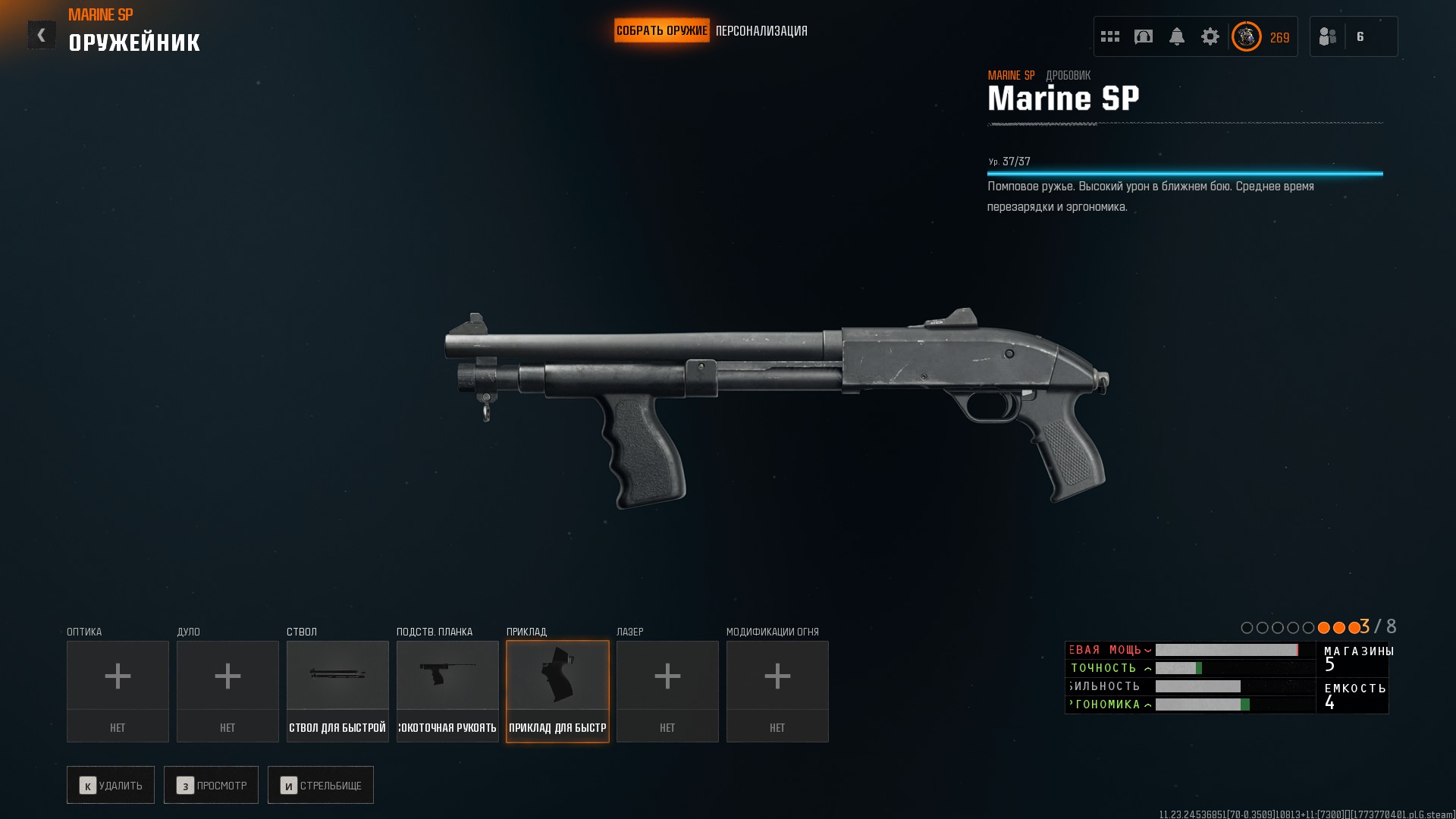 При установке «Ствол для быстрой перезарядки», «Высокоточная рукоять» и «Приклад для быстрого прицеливания» можно получить вариант Mossberg 500 shorty.