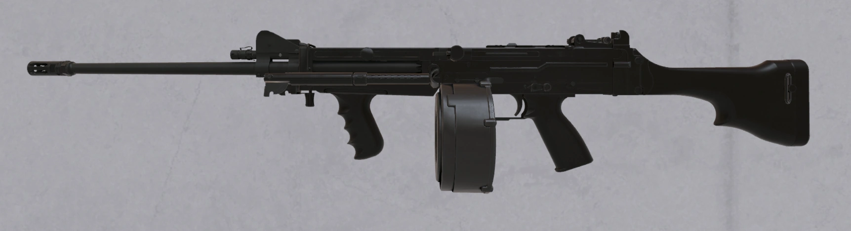 Пулемет Ultimax 100 был разработан компанией Chartered Industries of Singapore (CIS) в конце 1970-х годов как отечественный легкий пулемет для Вооруженных сил Сингапура. Впоследствии CIS была объединена с компанией Singapore Technologies Kinetics (STK). Версия Mark 3 отличается быстросъемным тяжелым стволом и другой рукояткой для переноски. Эта версия выпускалась в двух вариантах: стандартной и десантной длины. Темп стрельбы у пулемёта составляет 400-600 выстрелов в минуту, что соответствует игровой версии.