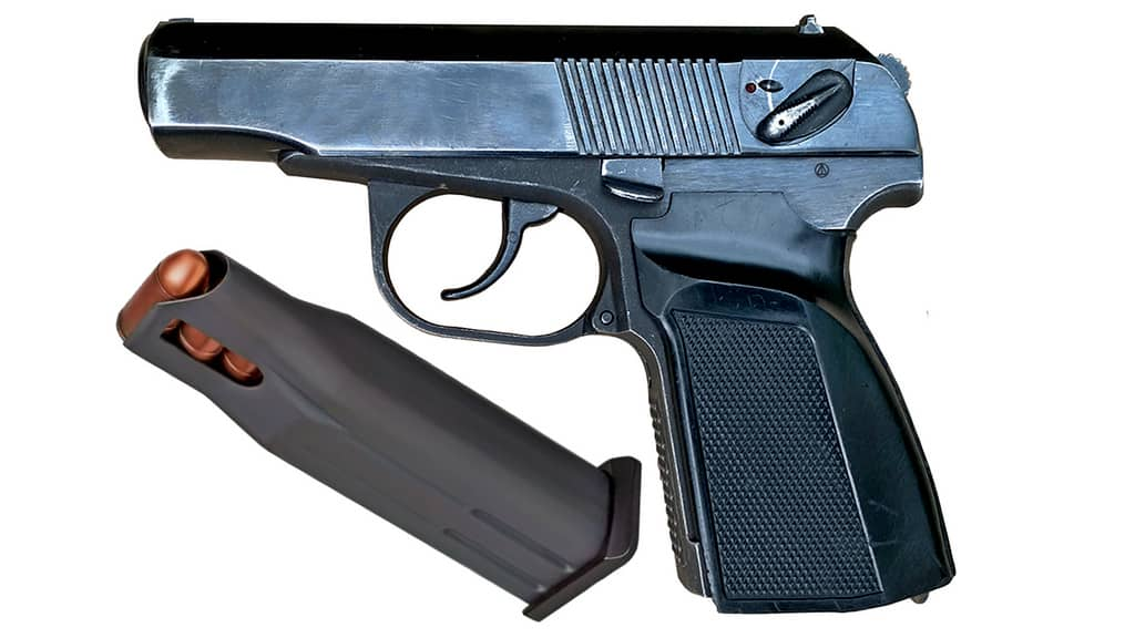 - Рукоятка затвора с левой стороны, а также переключатель режимов огня, похож на пистолет Zoraki 925;