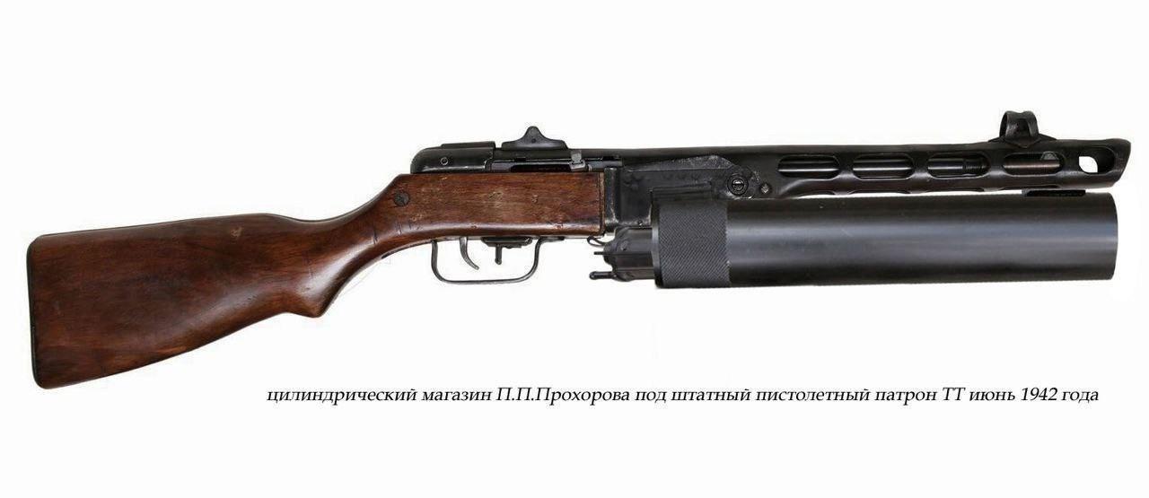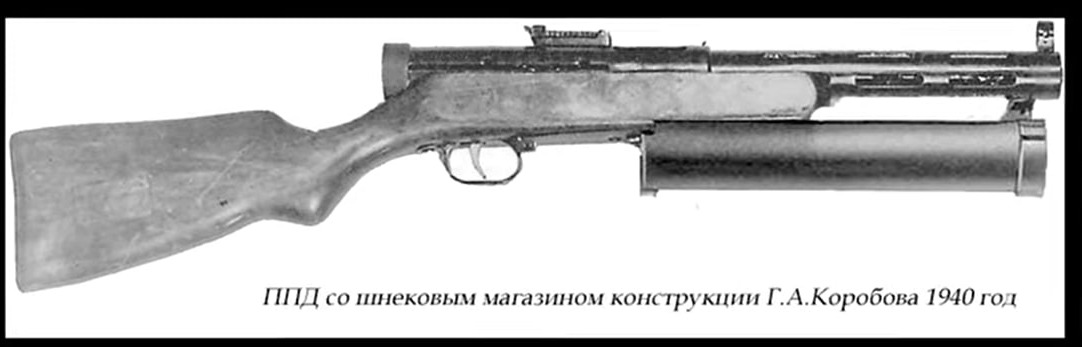 Первый из проектов шнековых магазинов, разработанных в нашей стране, относится к февралю 1940 года .Его автором является советский конструктор-оружейник Г. А. Коробов, работавший в то время в ЦКБ 14.Главной особенностью этого магазина является передвижение патронов по спиральному каналу под действием специального подавателя, приводимого в действие винтовой пружиной, работающей на скручивание. Сведений о том, удалось ли Г. А. Коробову воплотить проект магазина в металле, и вообще какую-либо другую информацию о нём обнаружить не удалось. Второй проект от П. П. Прохорова относится к июню 1942 года, когда в Отдел изобретений Артиллерийского Комитета ГАУ КА поступило предложение о создании «Цилиндрического магазина к пистолету-пулемёту под штатный пистолетный патрон». В ходе испытаний специалисты ГАУ вынесли следующее заключение: «Предлагаемый магазин конструктивно сложен, что вызовет малонадёжную его работу. Он также имеет большой вес и неудобные габариты, чем снизит маневренные свойства пистолетов-пулемётов по сравнению с существующими магазинами». Предложение было оставлено без дальнейшей реализации. По некоторым данным ёмкость такого магазина составляла 58 патронов.