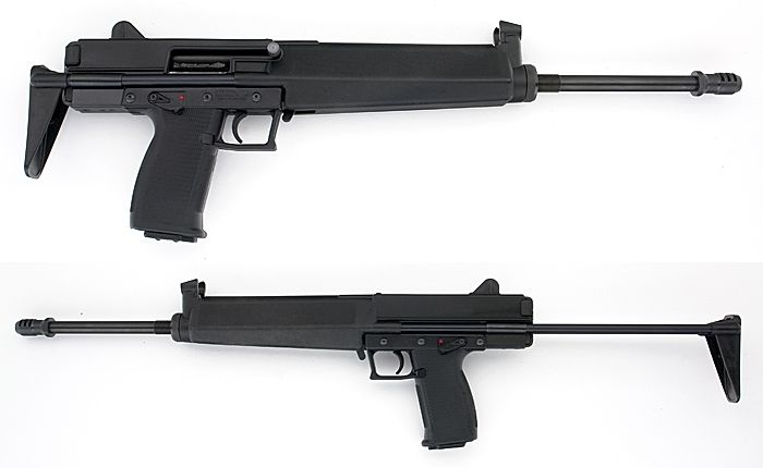 - Угловатая верхняя часть ствольной коробки и соединительный элемент между задней частью ствольной коробки и пистолетной рукояткой похожи на Ruger MP9.