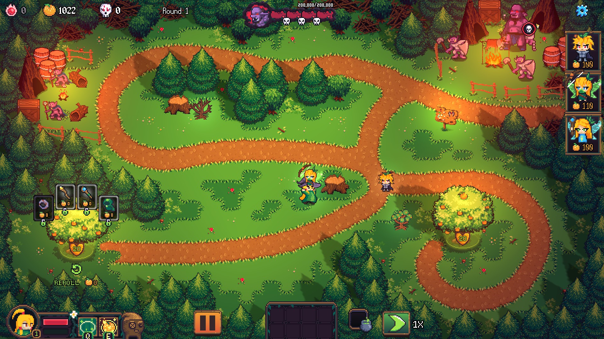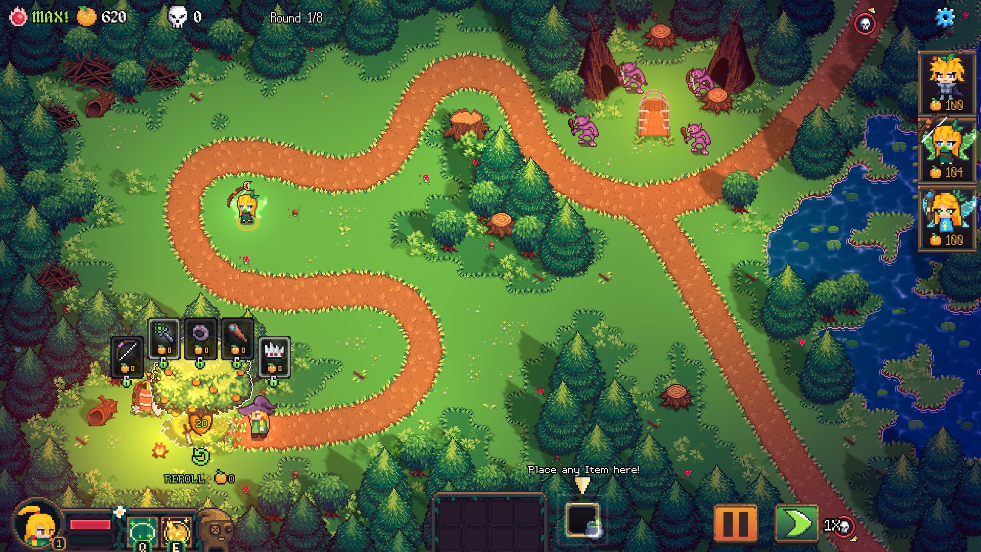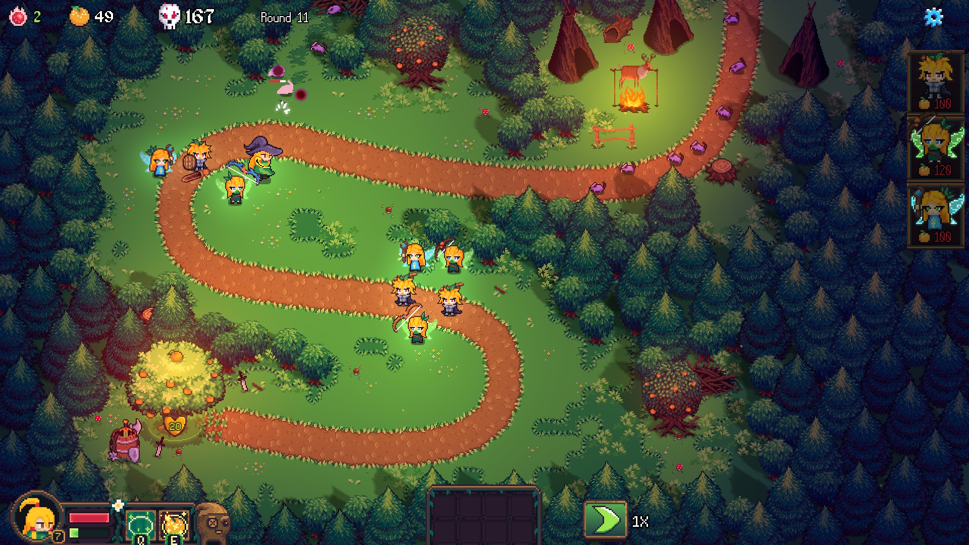 Ведьма должна охранять апельсиновые деревья от орд нападающих врагов. Помогут ей в этом славные герои: воины, лучницы и жрицы. Классическая святая троица — танк, дд, хилер.