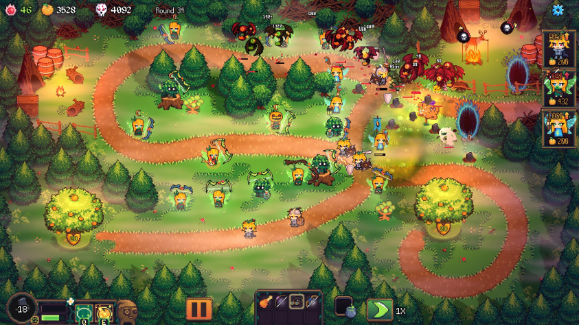 Враги представлены разнообразными чудищами. Есть обычные, летающие, стреляющие и боссы. Необычные юниты супостатов тоже что-то типа башен и умеют лупить через всю карту, но это достаточно редкий зверь.